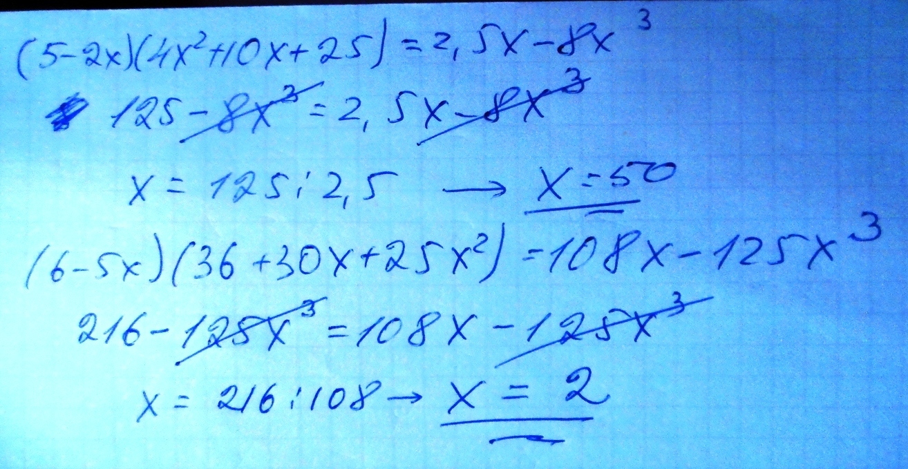 в обоих уравнениях произведение скобок - это формула сокращенного умножения разность кубов