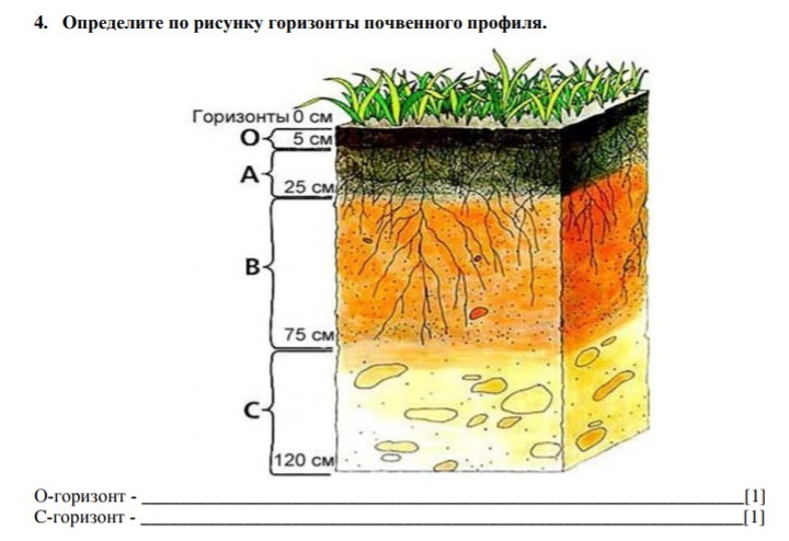 На рисунке показаны следующие горизонты почвенного профиля: