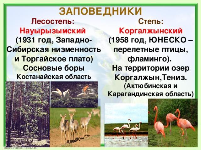 8). Заповедники: степи, лесостепи ( желательно по 2)
