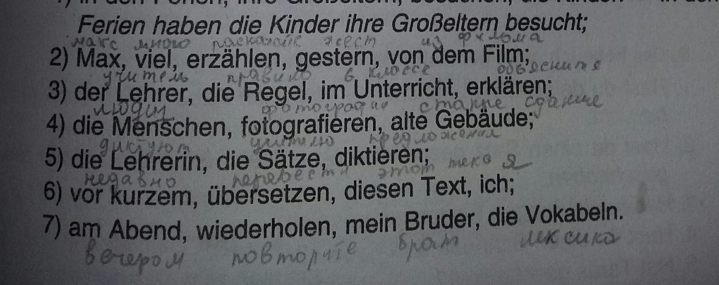 7. Am Abend wiederholt mein Bruder die Vokabeln.