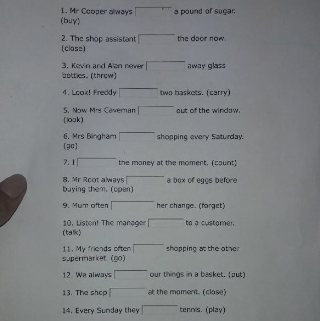 1buyed 2 closed 3 throwed 4carryed 5 looked 6 counted 7 goed 8opened 9 forgeted 10 talked 11goed 12puted 13 closed 14 played