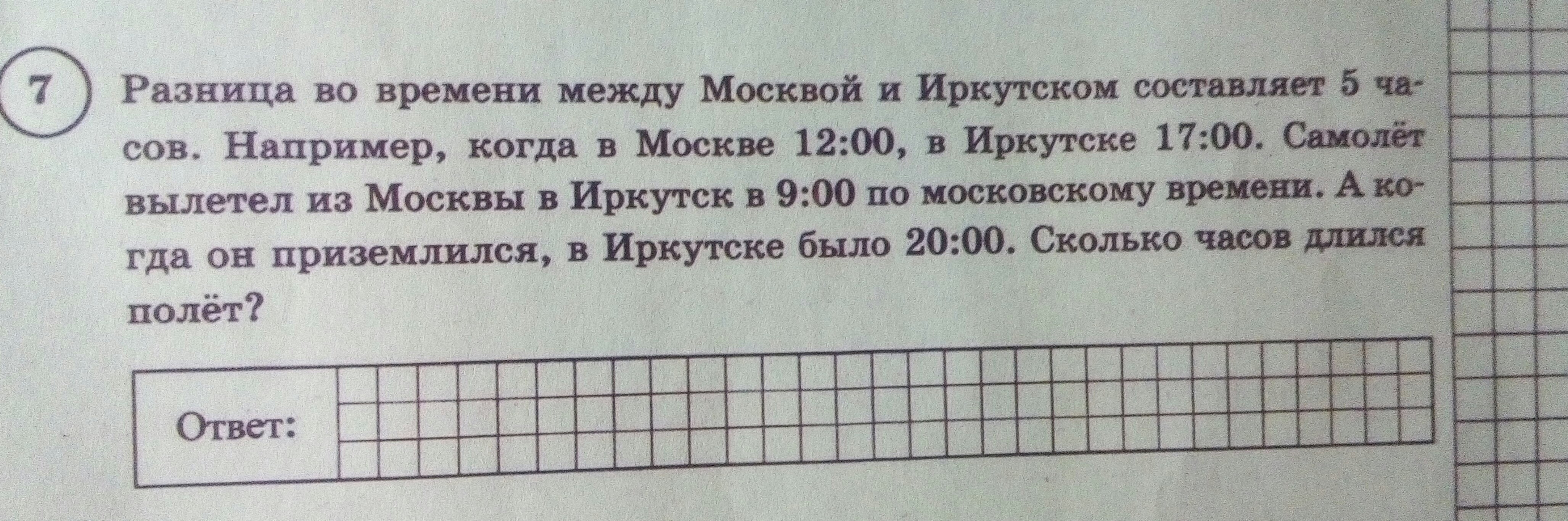 20-5 часов ( на московское) 15 часов -9 часов = 6 часов ( время полёта)