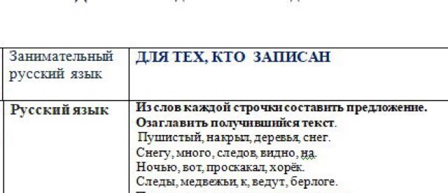 Пушистый снег накрыл деревья. На снегу видно много следов. Вот ночью проскакал хорёк. Медвежьи следы ведут к берлоге.
