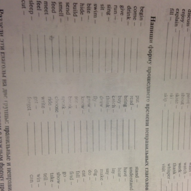 Began,came,drank,gave,ran,sang,sat,swam,bit,hid,built,sent,smelt,fed,met,felt,slept,cut,put,read,brought,bought,caught,thought,drew,flew,grew,knew,saw,