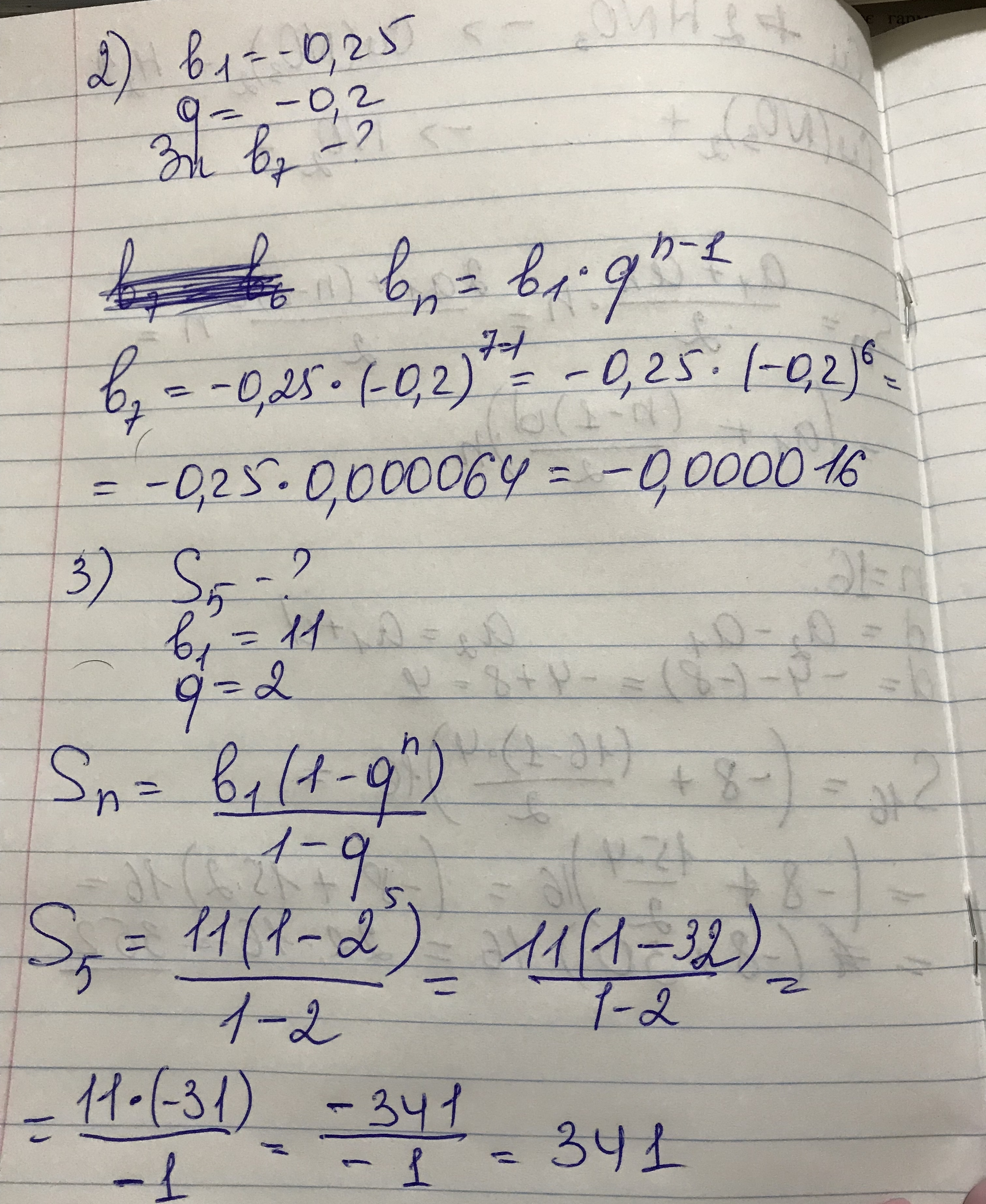 3.Найдите b7 член геометрической прогрессии, если b1 = - 0,25, q = - 0,2.