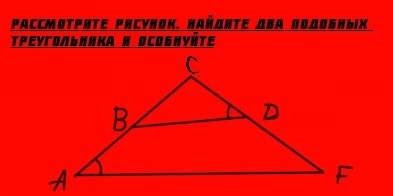 РАССМОТРИТЕ РИСУНОК. НАЙДИТЕ ДВА ПОДОБНЫХ ТРЕУГОЛЬНИКА И ОБОСНУЙТЕ
