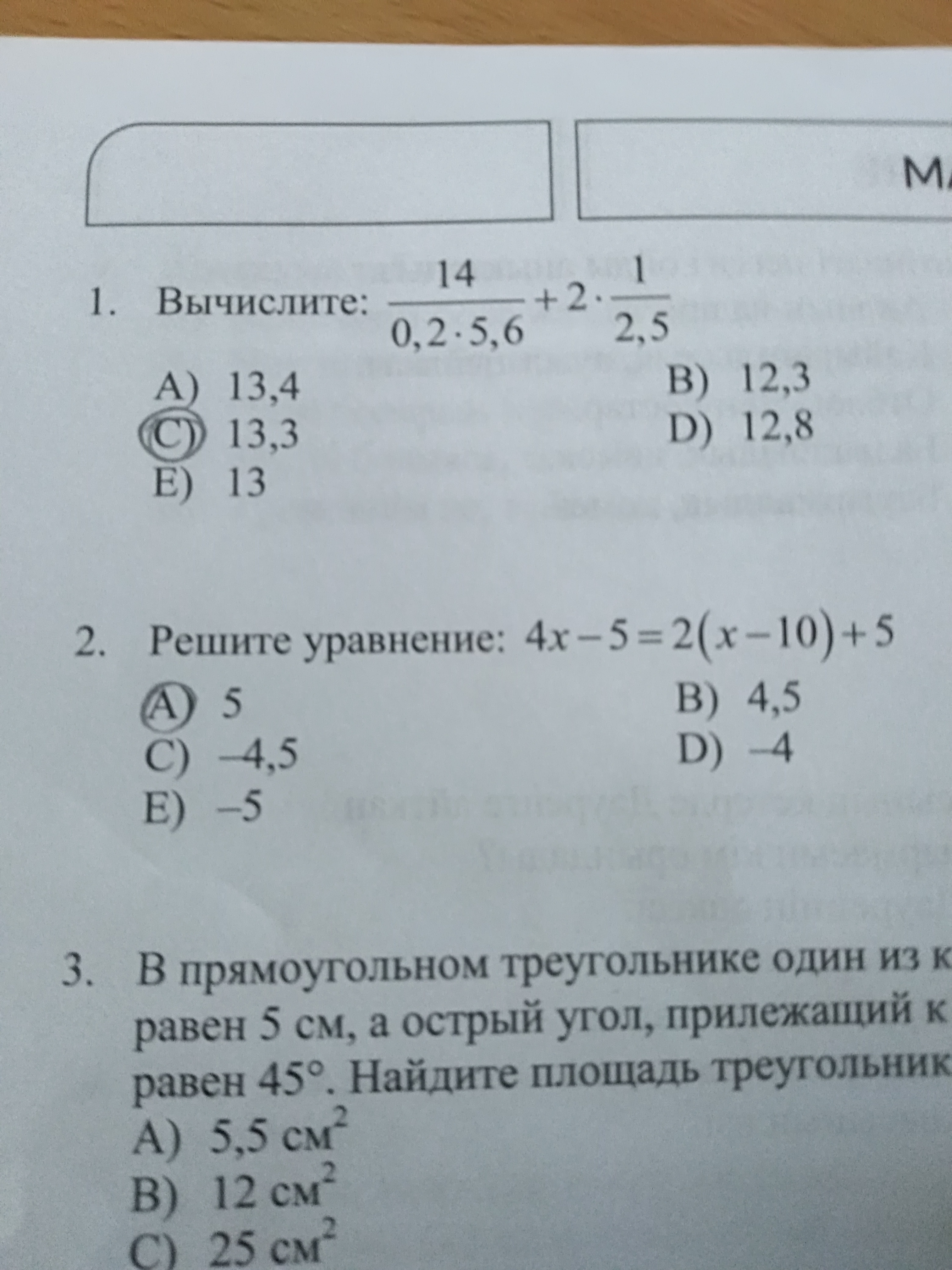 4х - 5 = 2х - 20 + 5