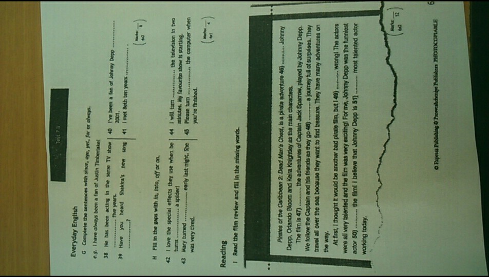 G 38 for 39 yet 40 since 41 ago H 42 into 43 in 44 on 45 off 46 where 47 about 48 on 49 was 50 in 51 the