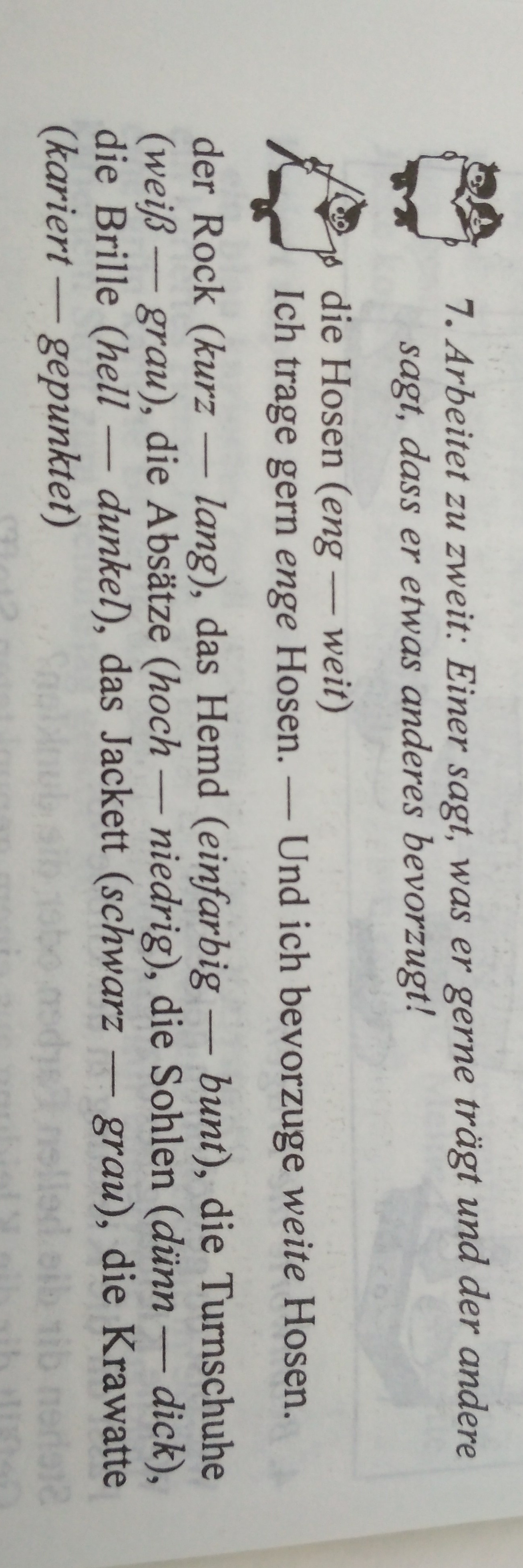 Ich trage gern weiße Turnschuhe. - Und ich bevorzuge graue Turnschuhe.