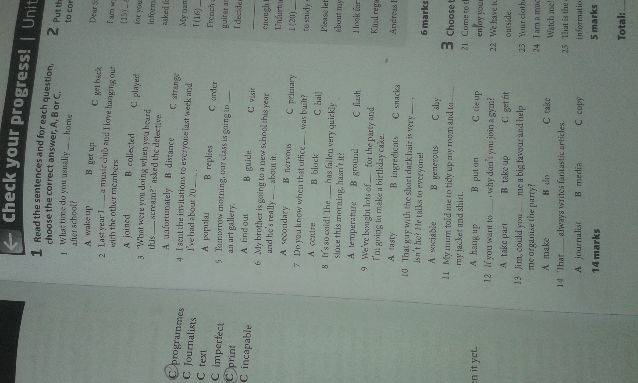 1)C, 2)A, 5)B , 7)C, 8)A, 9)B, 11)A, 12)A, 13)A.