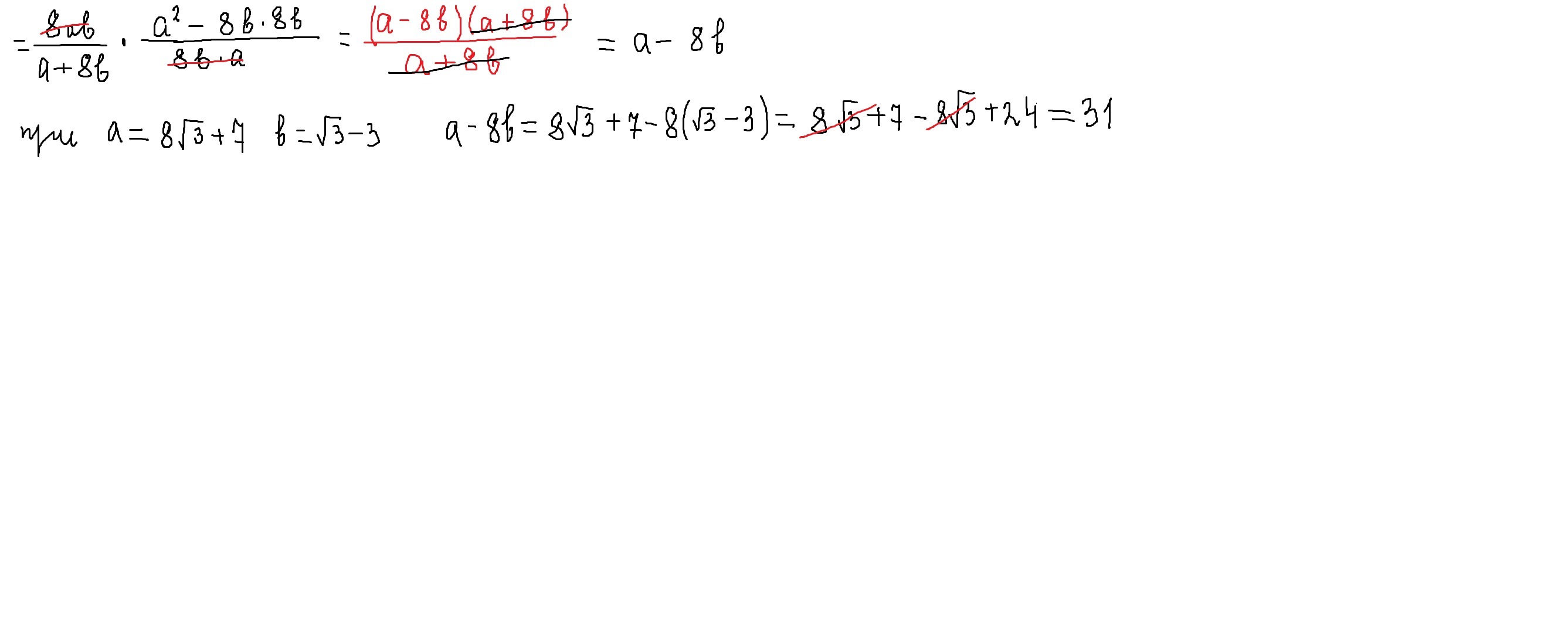 сначала упростили ,а потом применили формулу а²-в²=(а-в)(а+в),ну и подставили значения а и в