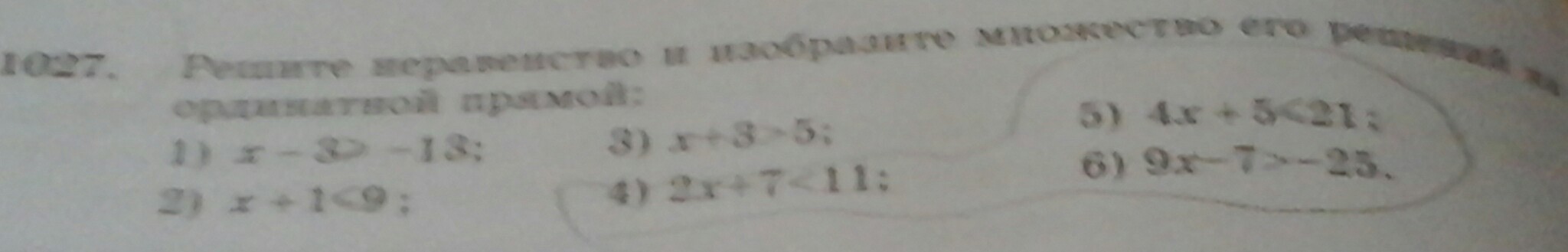 6) 9x - 7 > -25