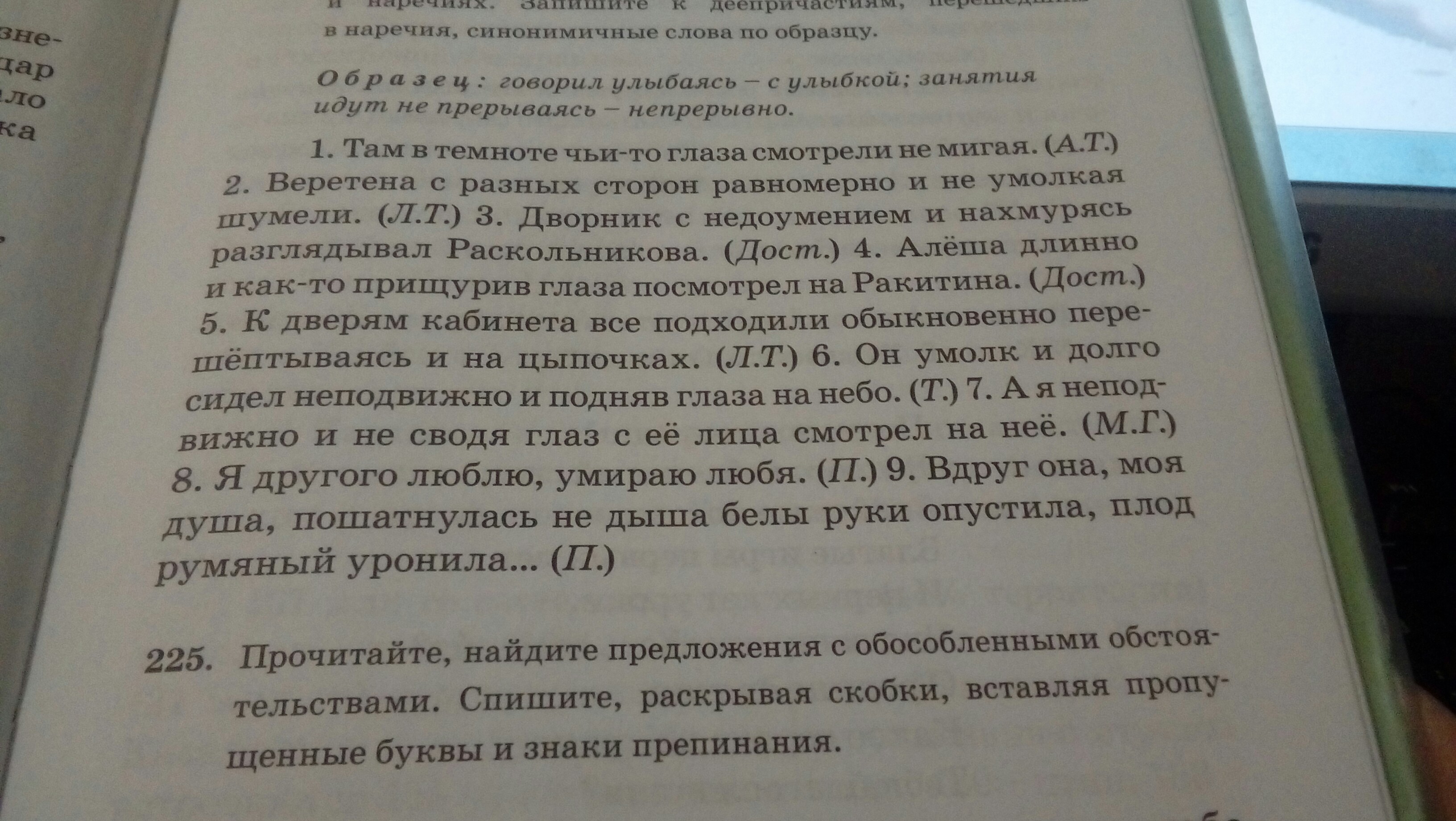 Там, в темноте, чьи-то глаза смотрели не мигая. Веретена с разных сторон равномерно и не умолкая шумели. Дворник с недоумением и нахмурясь разглядывал Раскольникова. Алеша длинно и как-то прищурив глаза посмотрел на Ракитина. К дверям кабинета все подходили обыкновенно перешептываясь и на цыпочках. Он умолк и долго сидел неподвижно и подняв глаза на небо. А я неподвижно и не сводя глаз с ее лица, смотрел на нее. Я другого люблю, умирая любя. Вдруг она, моя душа, пошатнулась не дыша, белы руки опустила, плод румяный уронила.