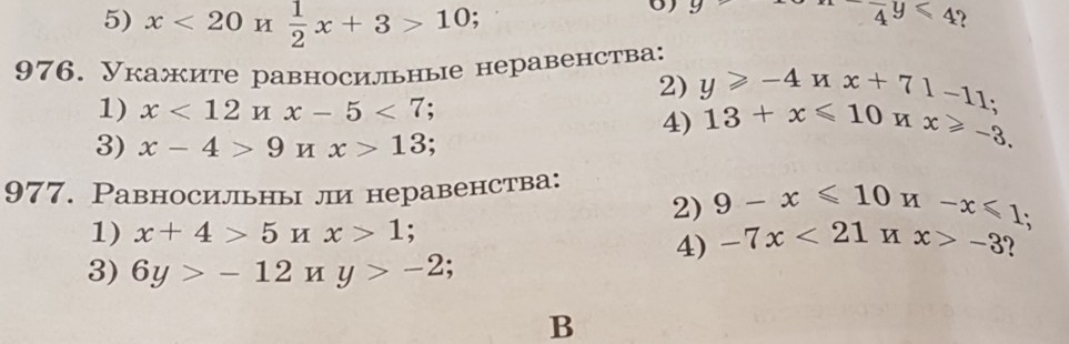 4) -7x<21 и x>-3 => x>-3 и x>-3; равносильне.