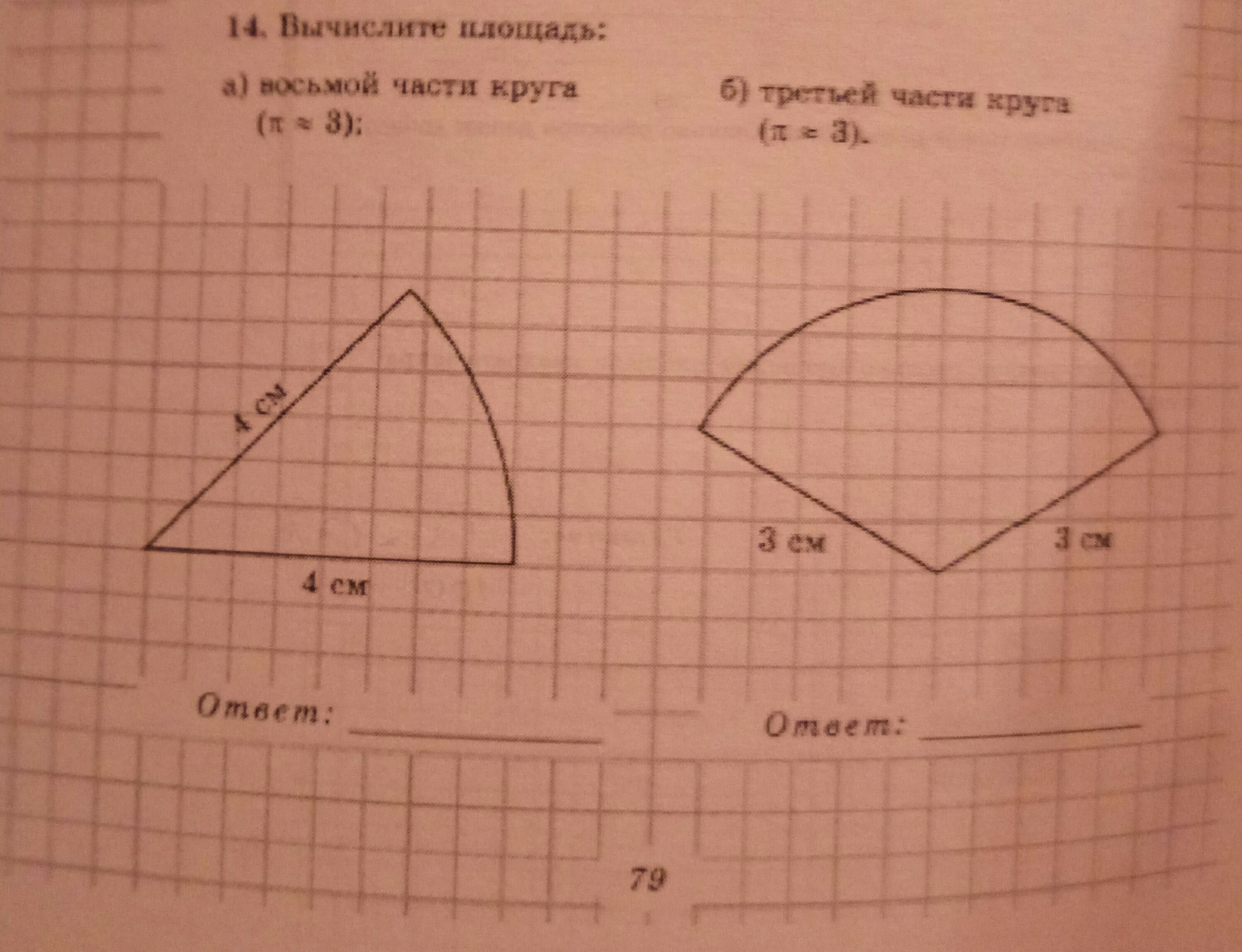 S круга = пr^2 , а так как это восьмая часть круга , то S = пr^2/ 8 = 3×4^2/8 = 6 см^2