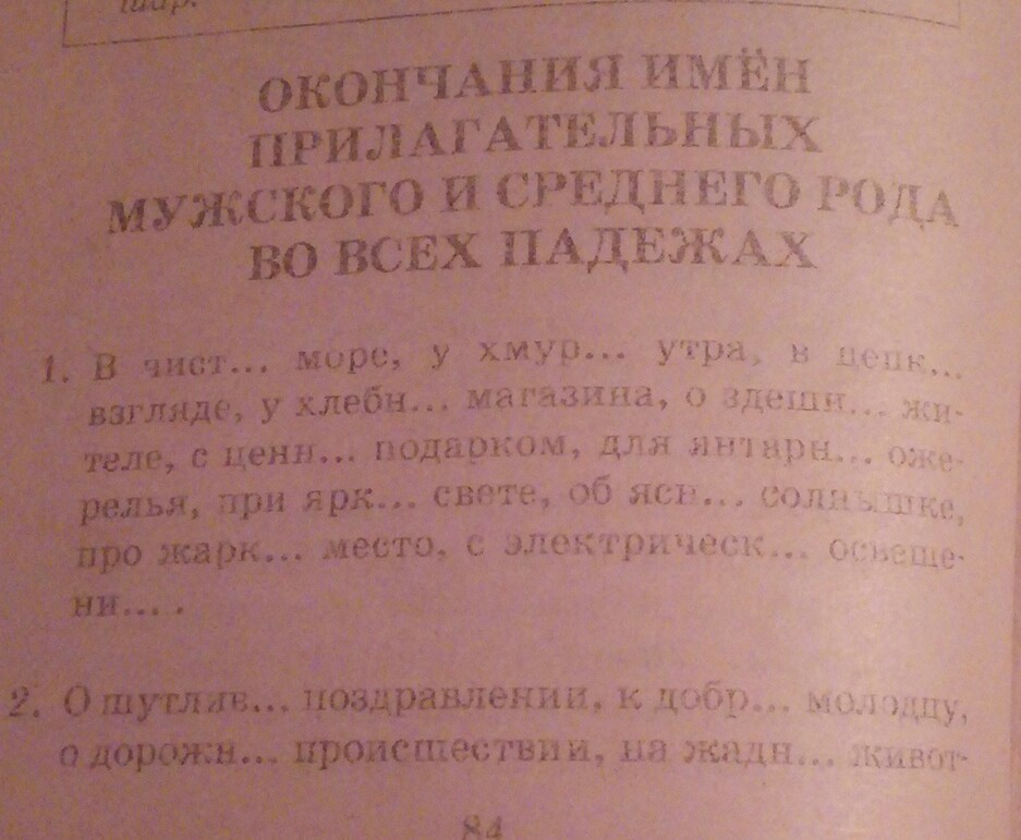 Окончания имен прилагательных мужского и средного рода во всех . упр 1. Пожалуйста ответ