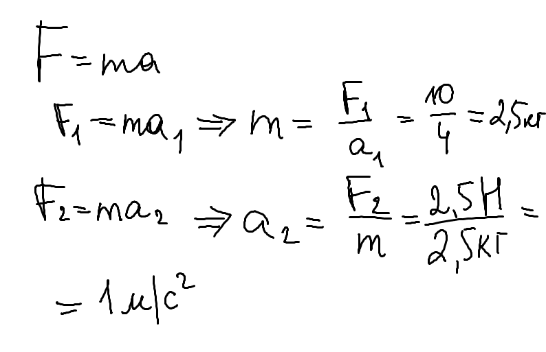 если под действием силы F1=10H тело движется с ускорением а1=4м/c то под действием силы F2=2.5H оно будет двигаться с ускорением а2=?