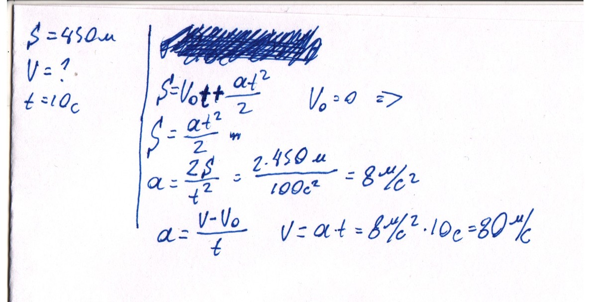 длина дорожки для взлета самолета 450м. какова скорость самолета при взлете, если он движется равноускоренно и взлетает через 10 секунд