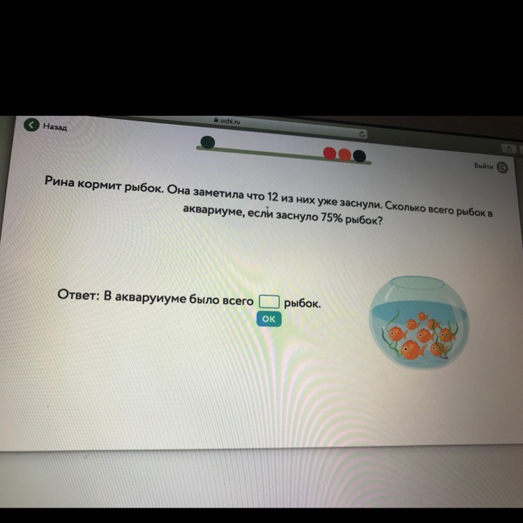 16 рыбок, ибо 75% это 3/4 следовательно 12:0.75=16