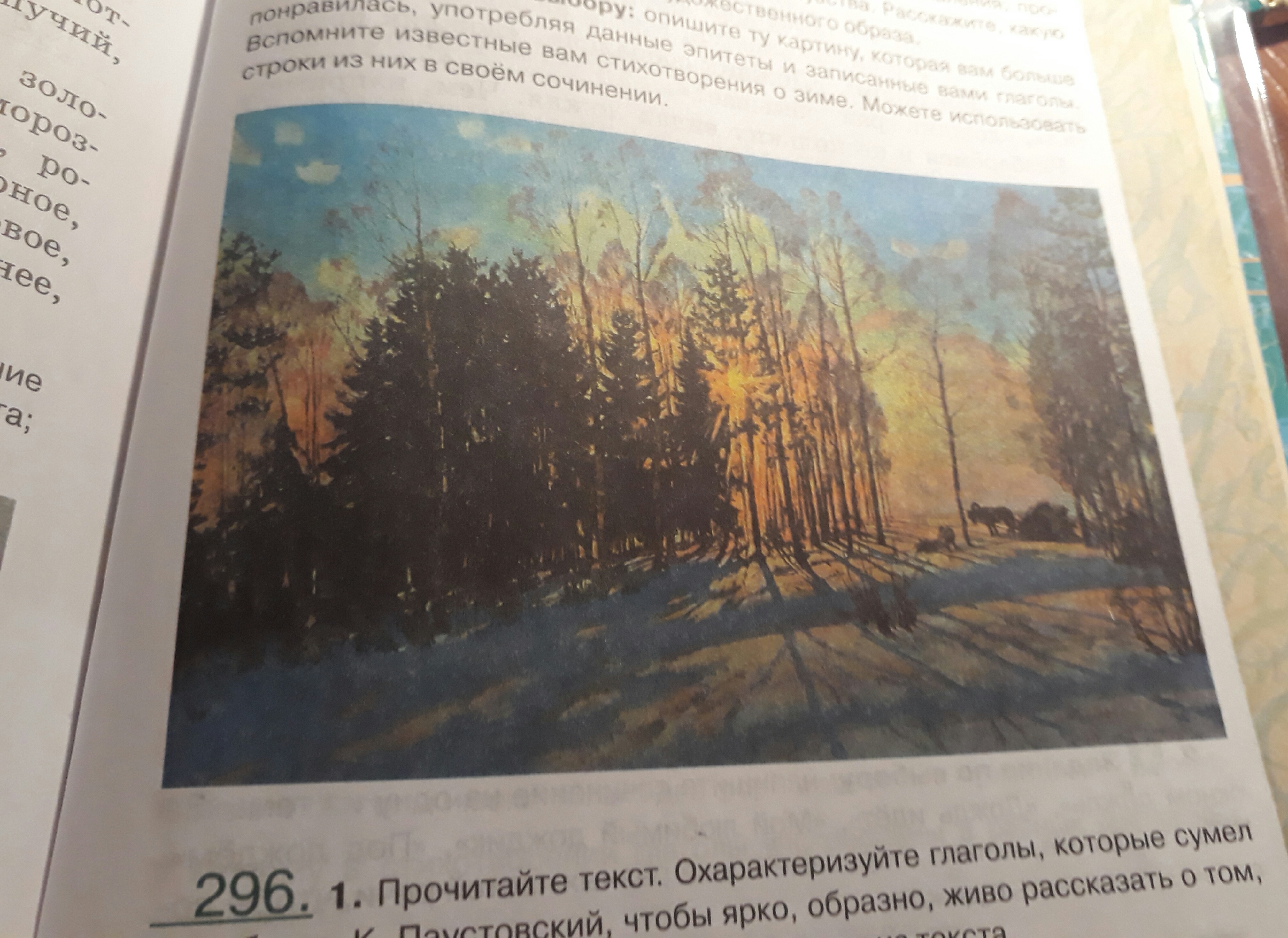 Смотря на картину "Зимнее солнце", можно понять как красива зима в его блеске. Мы видим что художник изобразил земное светило, чьи лучи пробиваются сквозь лесные деревья.Видна лесная жизнь. Очень интересно показан сам виновник этой прекрасной картины как лесной пожар, яркое и жаркое солнце светит на всю картину. Чуть поодаль нарисован мужичок, который собирает ветки , складывая их на повозку с лошадкой.