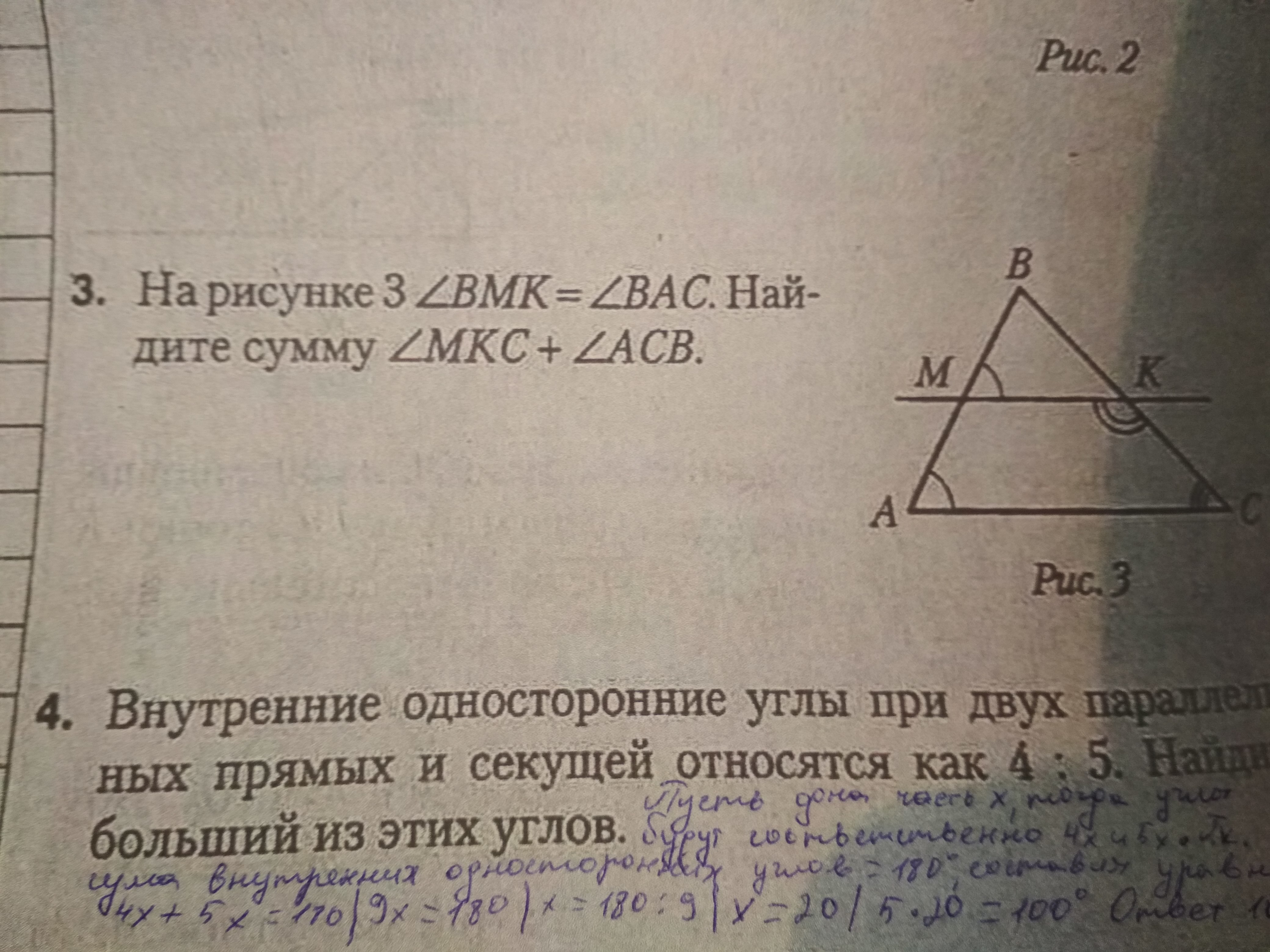 ∠MKC + ∠ACB = 180° - внутренние односторонние углы