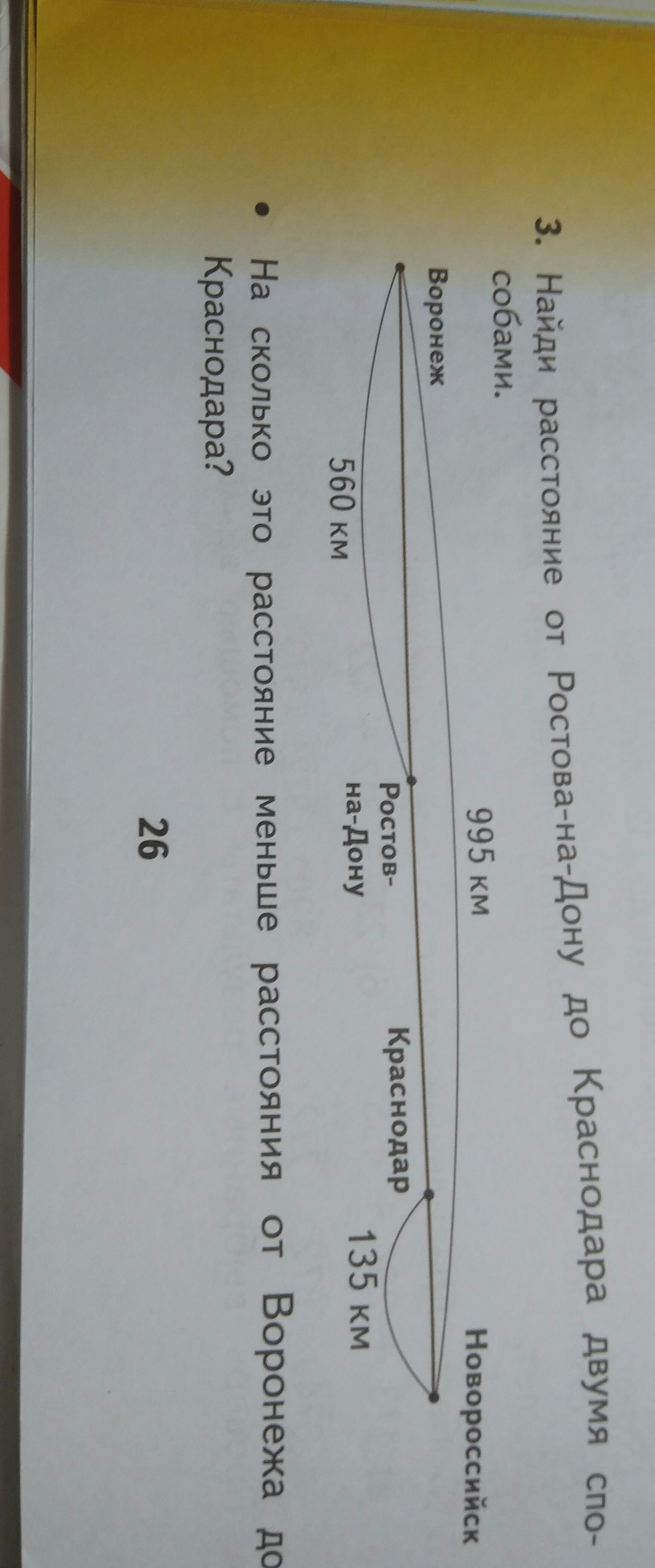 1)560+135=695(км)расстояние от Воронежа до Ростова-на-Дону и от Краснодара до Новороссийска