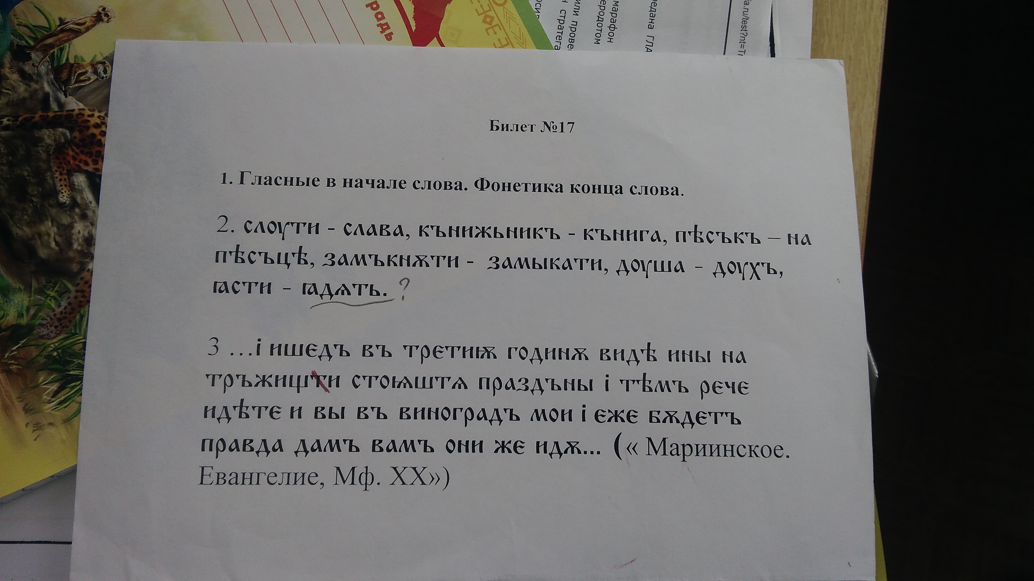 Мне нужно объяснить фонетические или грамматические особенности. Второе задание. Это старославянский язык.