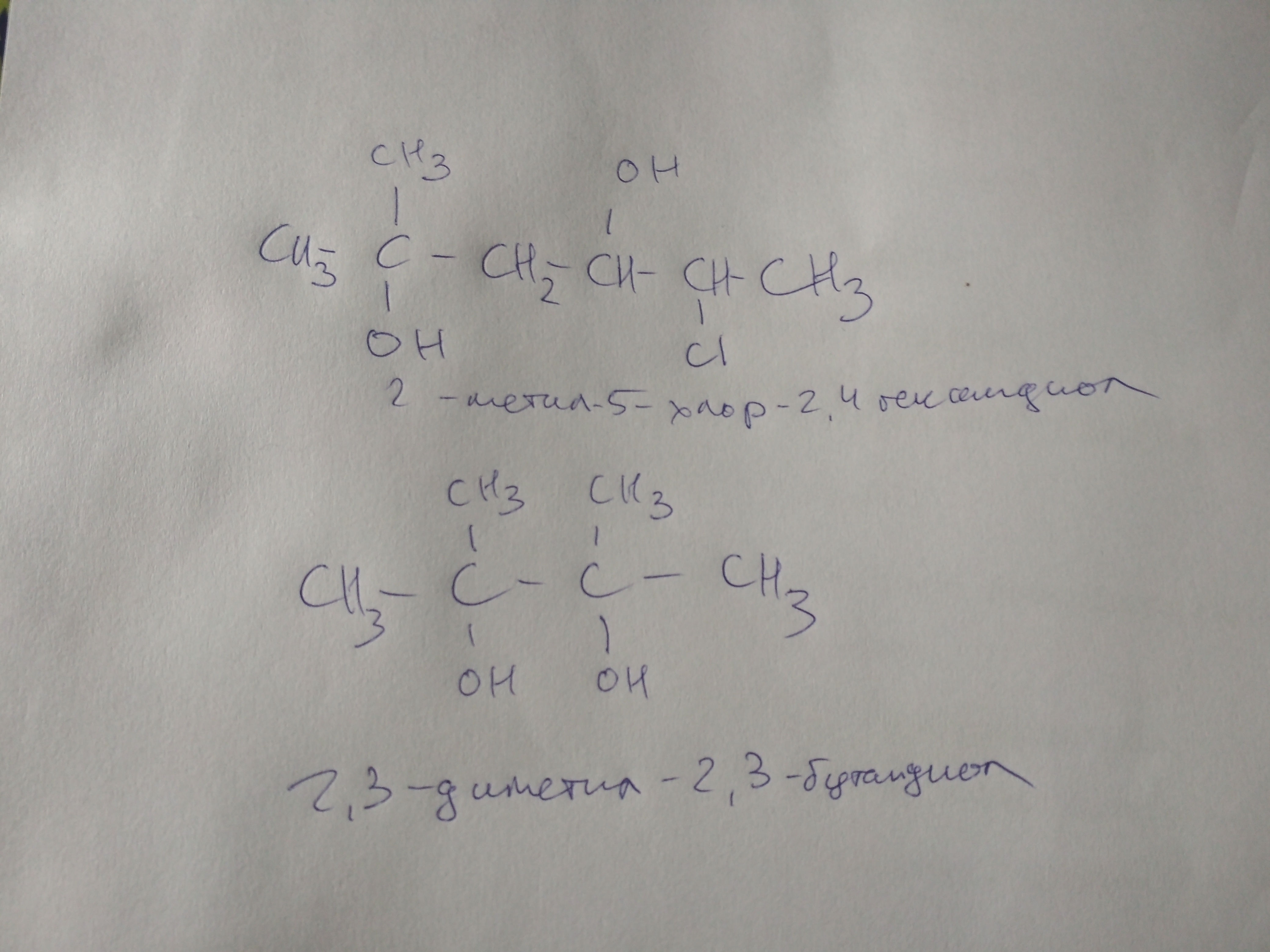 напишите структурные формулы следующих сполук..2-метил-5-хлор-2,4-гександиол, 2,3-диметил-2,3-бутандиол