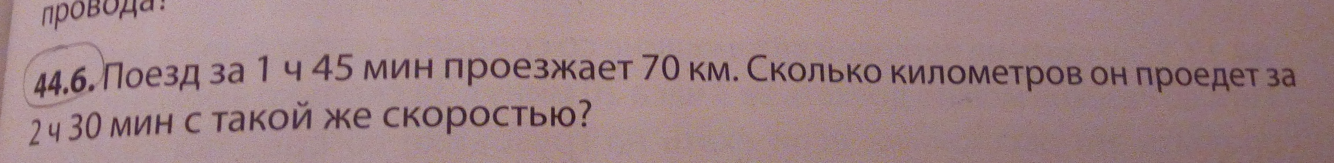 Поезд за 1 час 45 мин проезжает 70 км.Сколько км он проедет за 2 ч 30 мин с такой же скоростью?