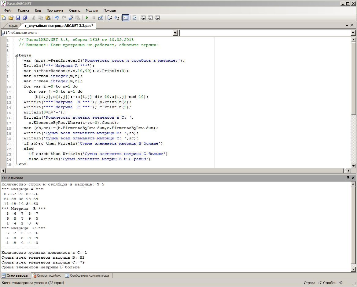 – сумму всех элементов матрицы B и сумму всех элементов матрицы C;