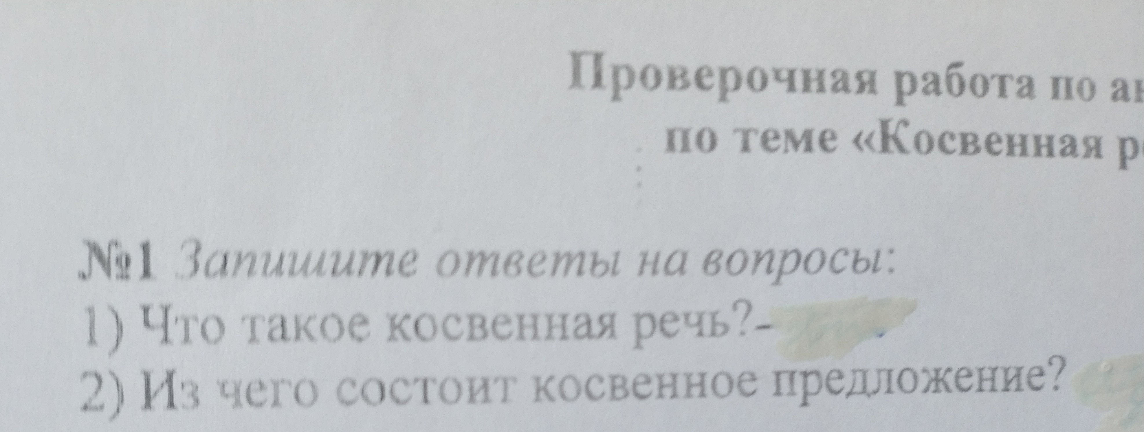 косвенная речь - это чужое предложение которое ты рассказываешь своими словами.