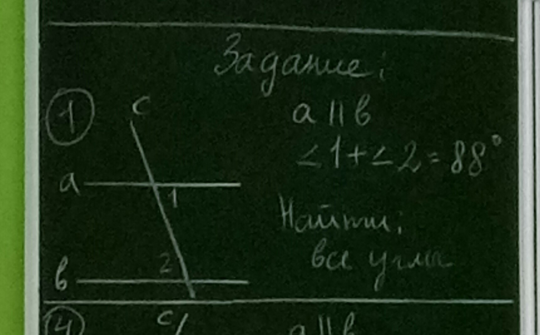 88:2=44 градуса угол 1 ( как накрест лежащие)