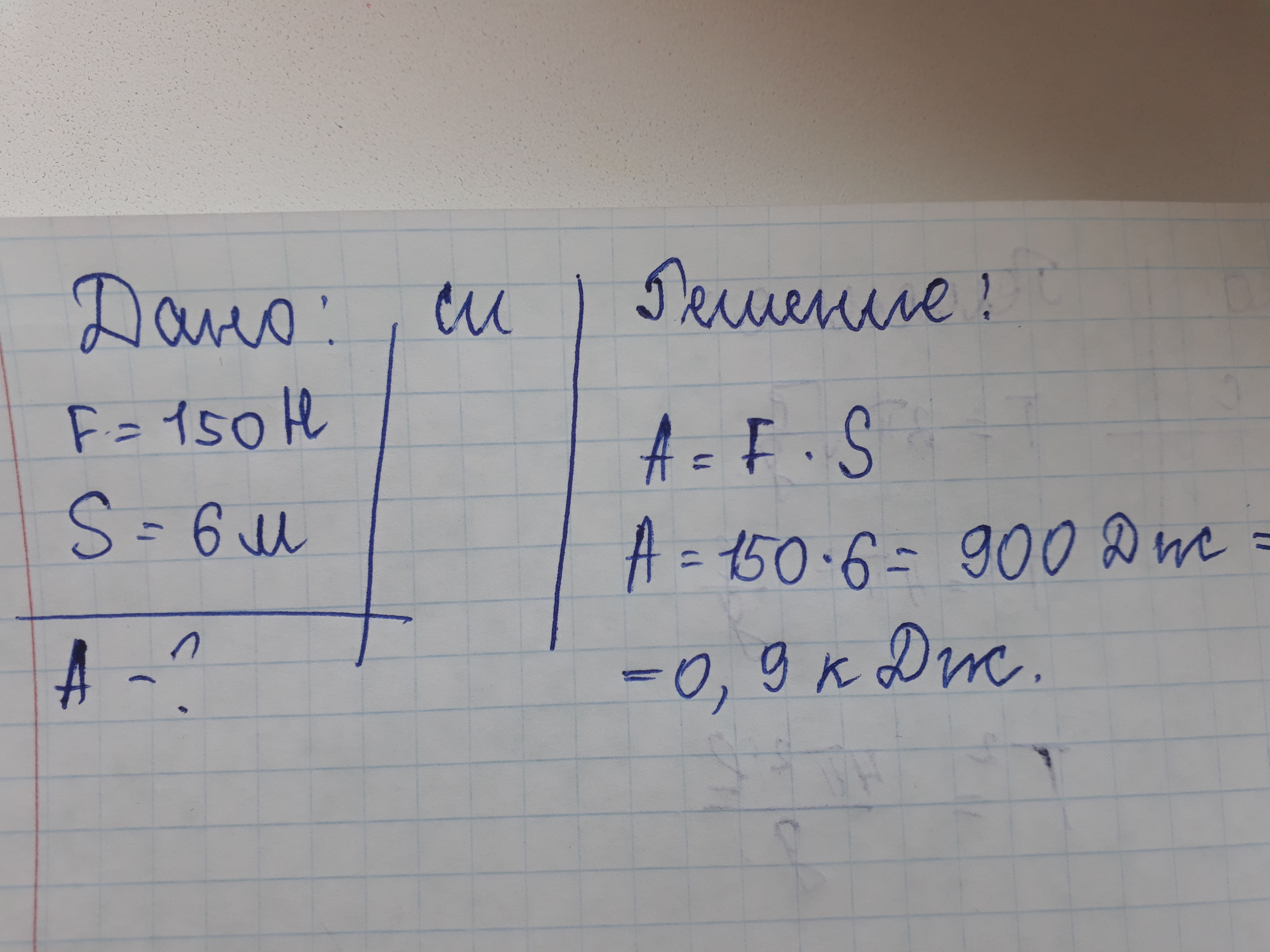 Вычислите работу силы 150H при перемещении тела в направлении действия силы на 6м
