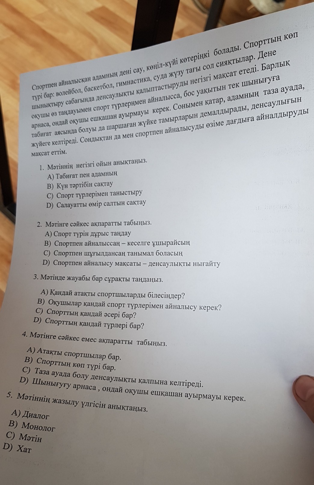 1)December 2)точно білмеймін жатырмын бірақ мүмкүн 2) а немесе D 3)De 4 )а 5)c
