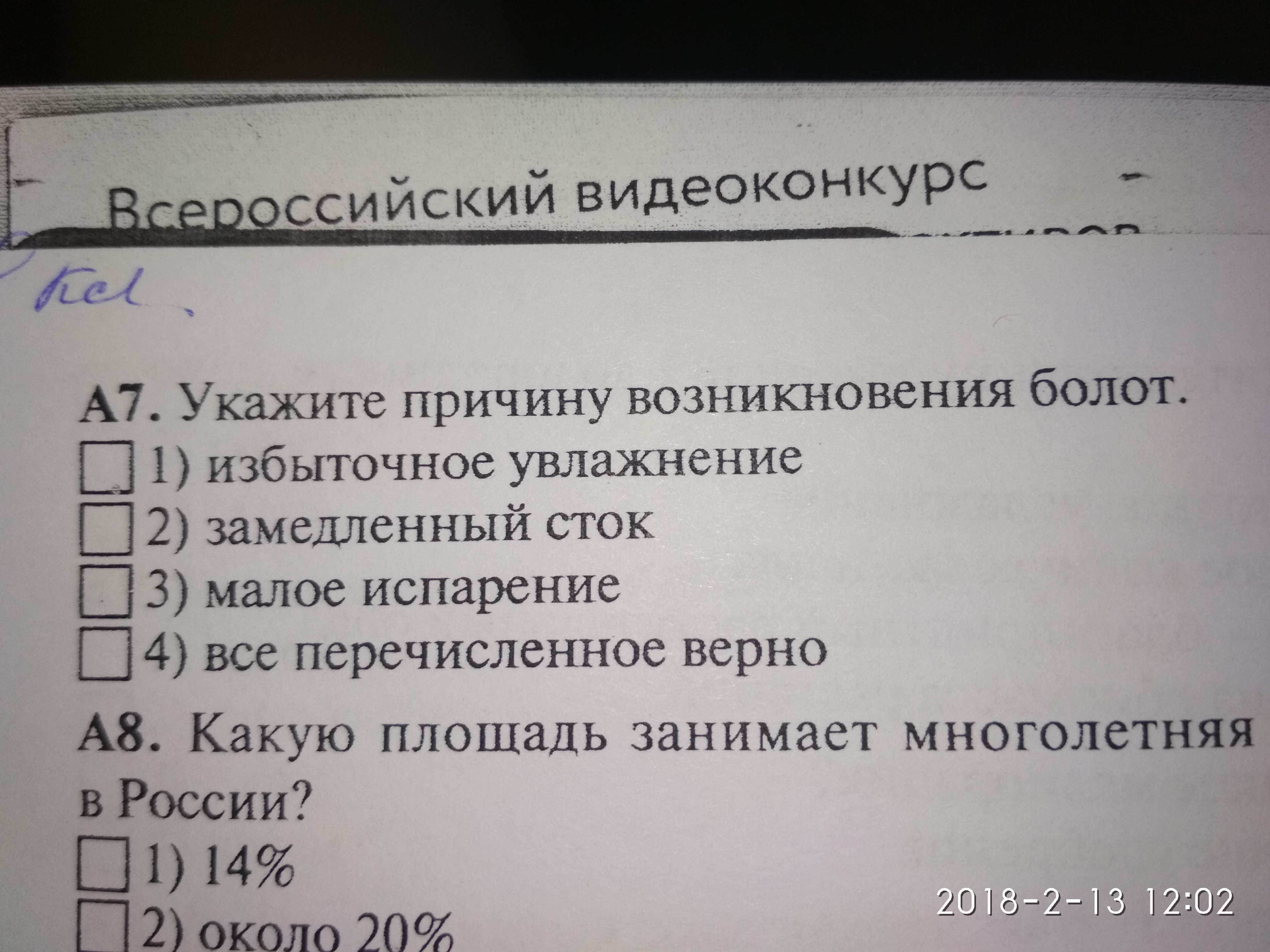 А8 Ответ:Вечная мерзлота занимает примерно от 60 до 65 %