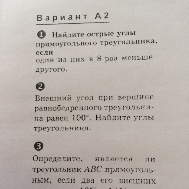 1. Внешний угол в 100 градусов смежный с углом при вершине А(пусть будет так)