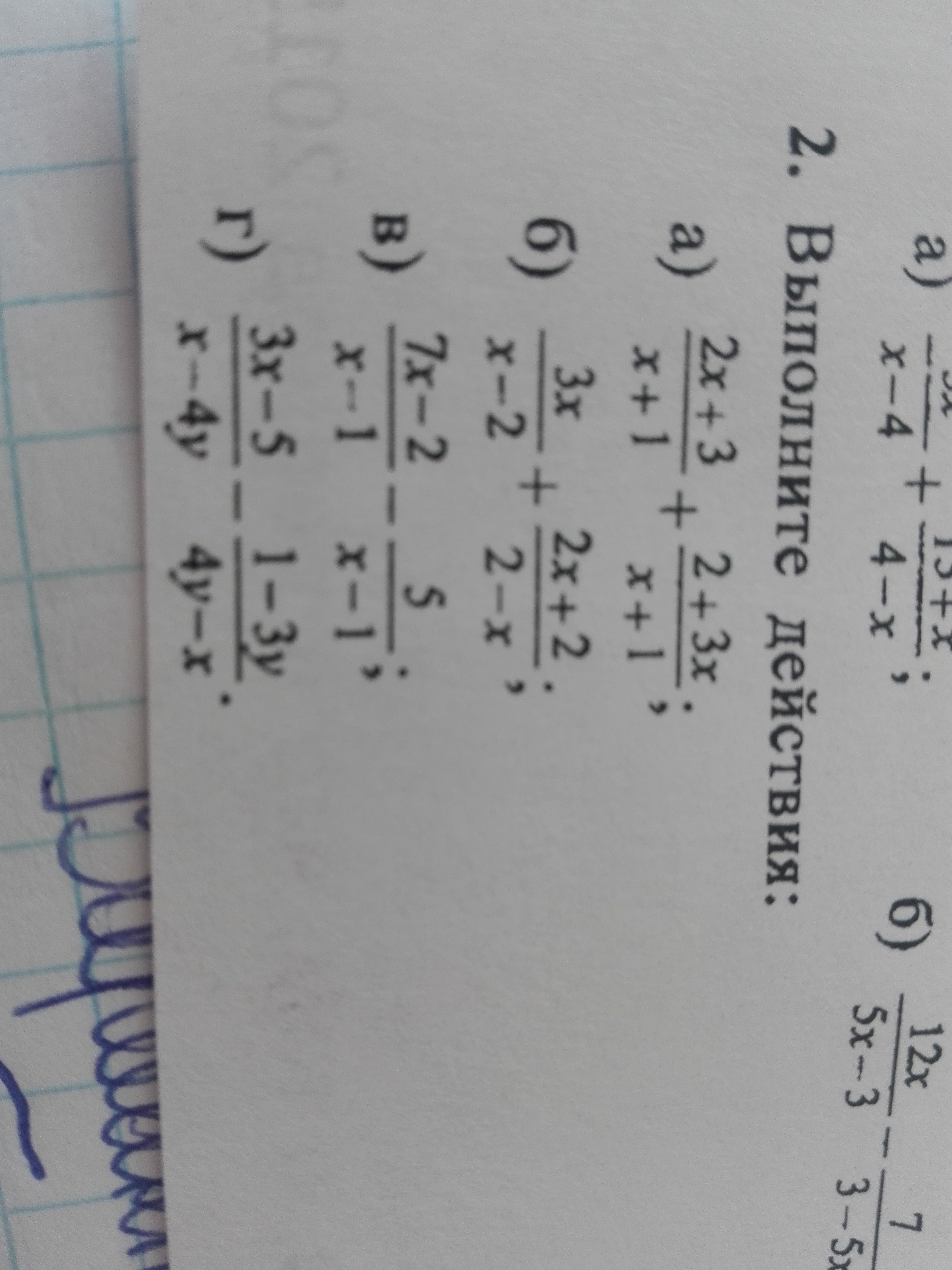 4)3x-5/x-4y - 1-3x/x-4y минус появился так поменяли местами второй знаменатель стало -(x-4y) минус вперед