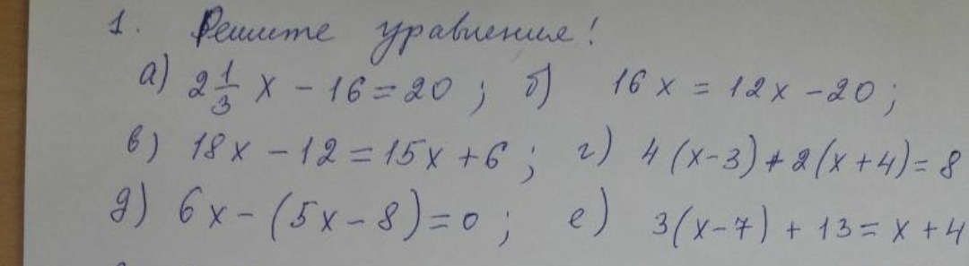 а) 2 1/3х-16=20 б) 16х=12х-20 в) 18х-12=15х+6