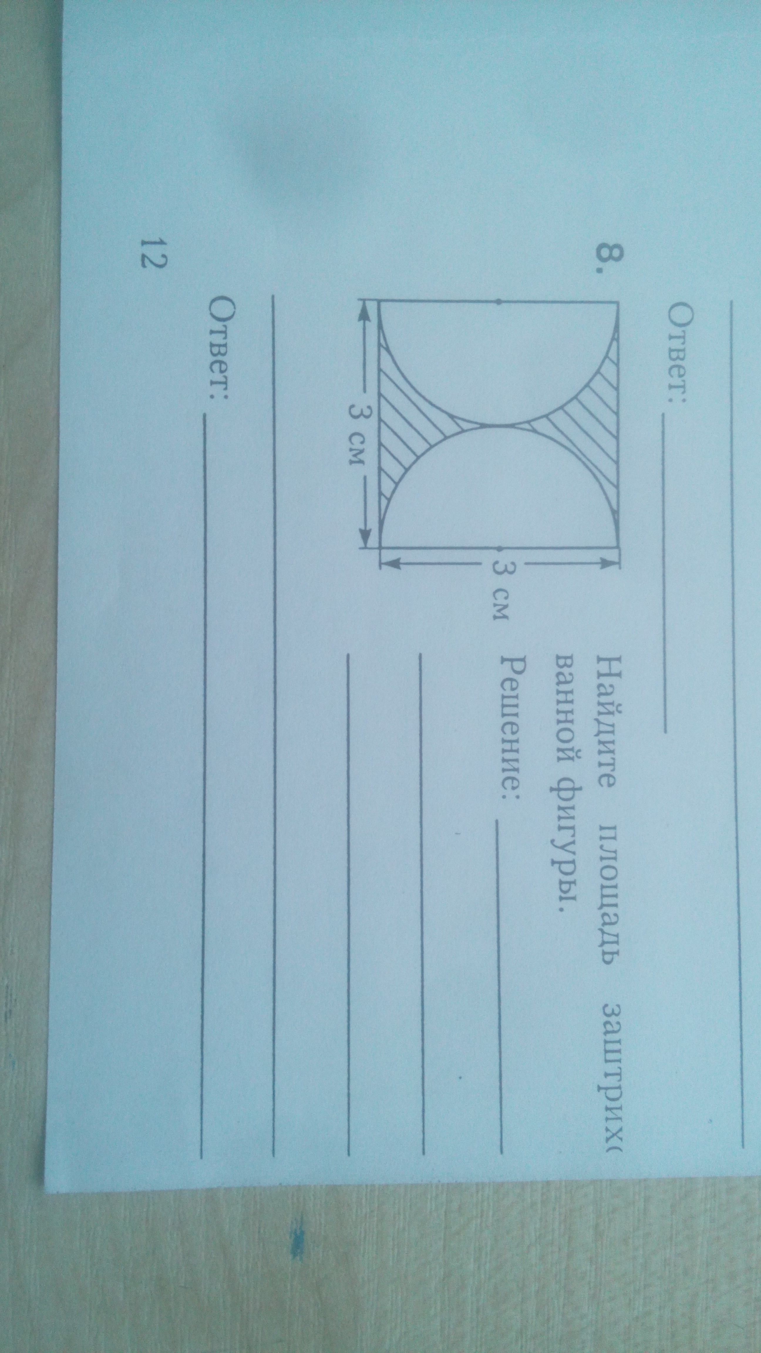 2)Из площади квадрата вычитаем площадь полуокружностей. 9-7,06=1,94