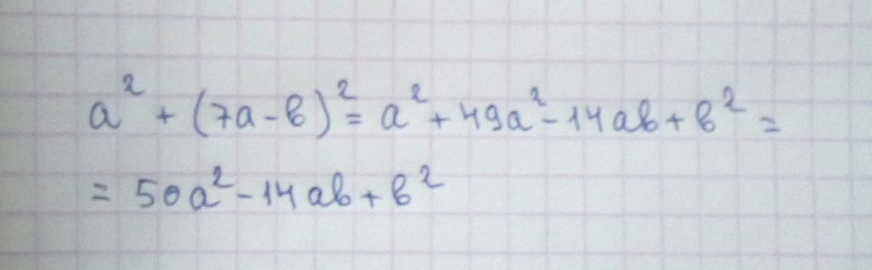 a^2+(7a-b)^2= a^2+49a^2-14ab+b^2= 50a^2-14ab+b^2