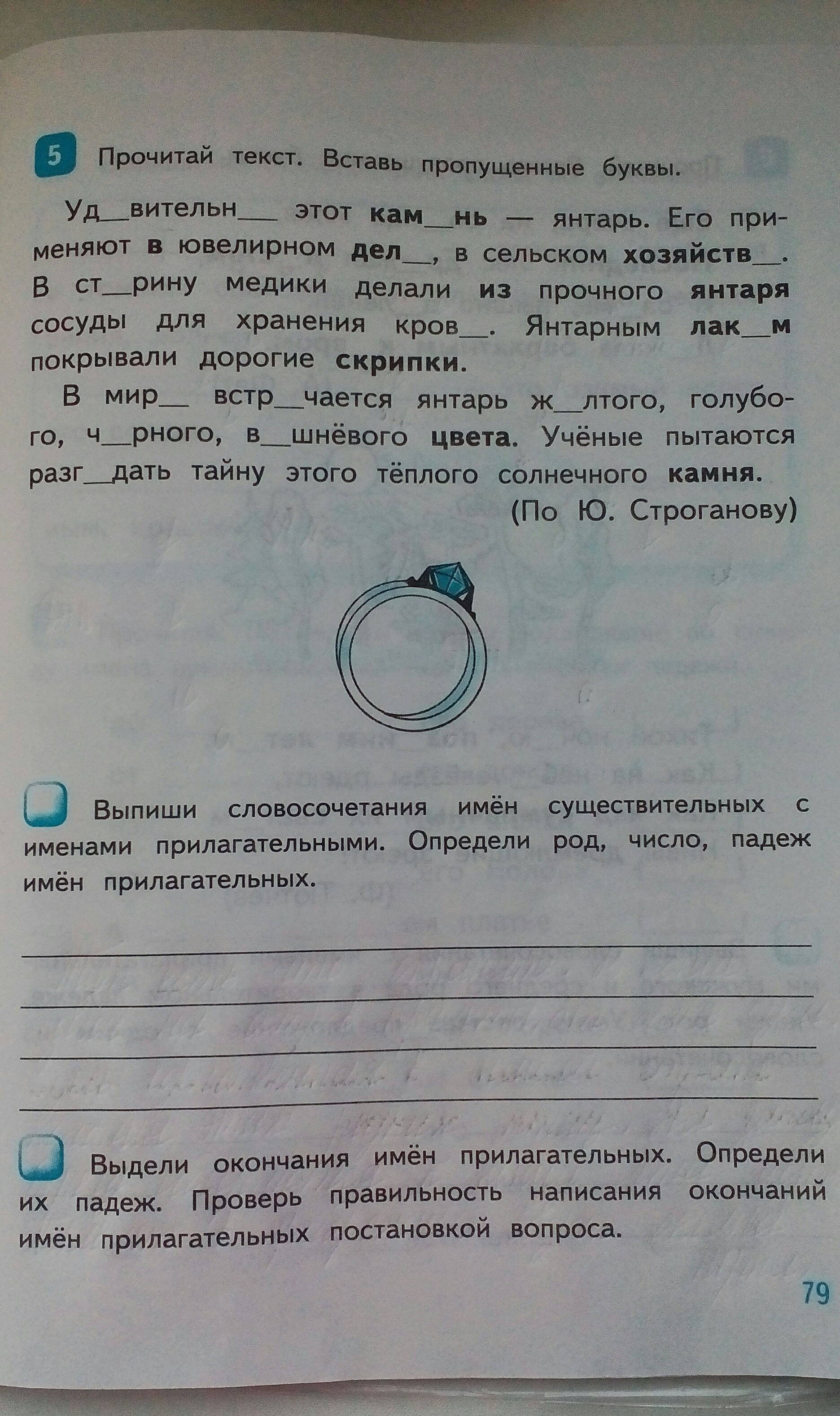 1 задание: удивительный камень- мужской род, ед. Число , И.п. ; в ювелирном деле - ср. Р ед. Число П.п.