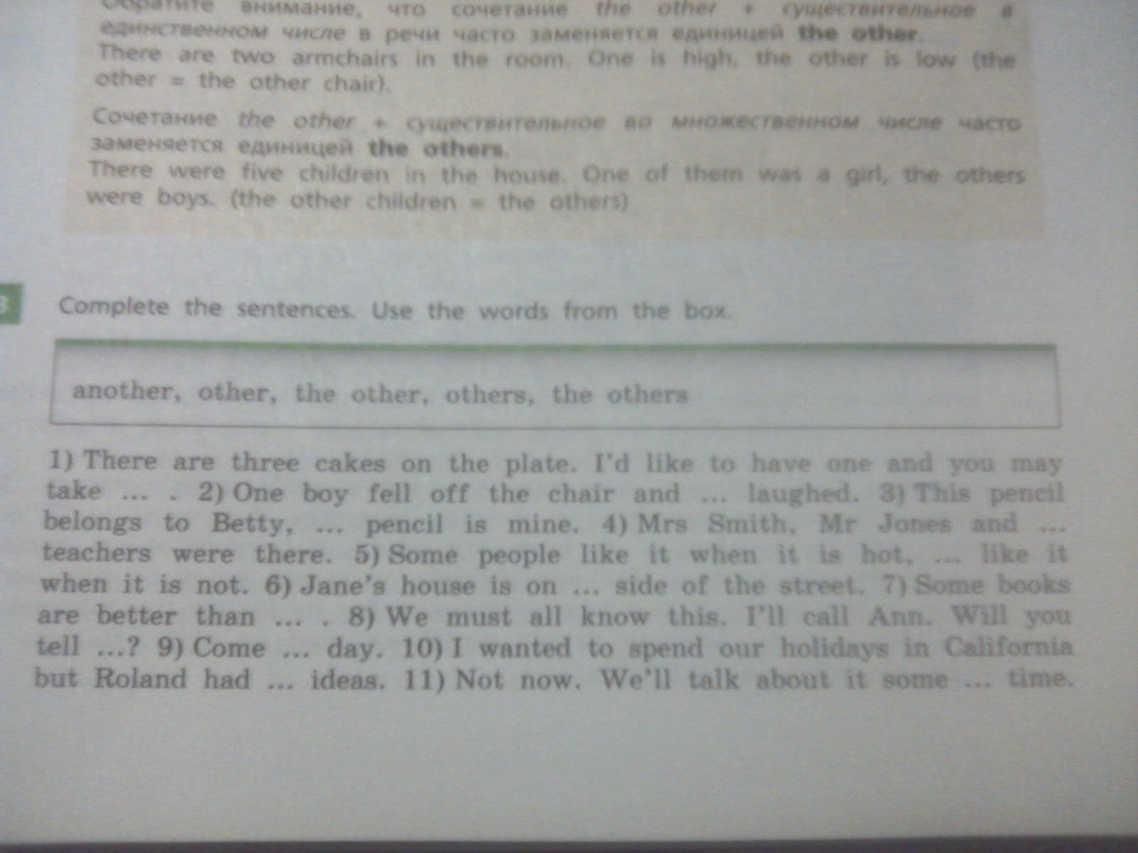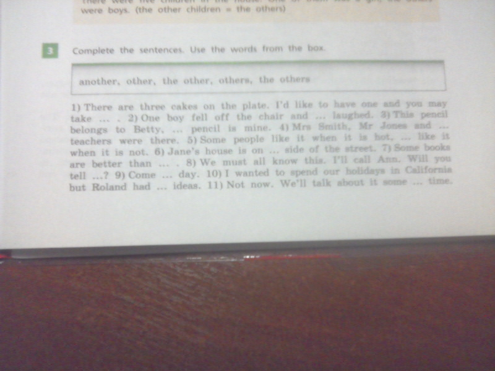 1. the others 2. another 3. the other. 4. other 5. others. 6. the other. 7. others. 8. others 9 another. 10 other 11. other