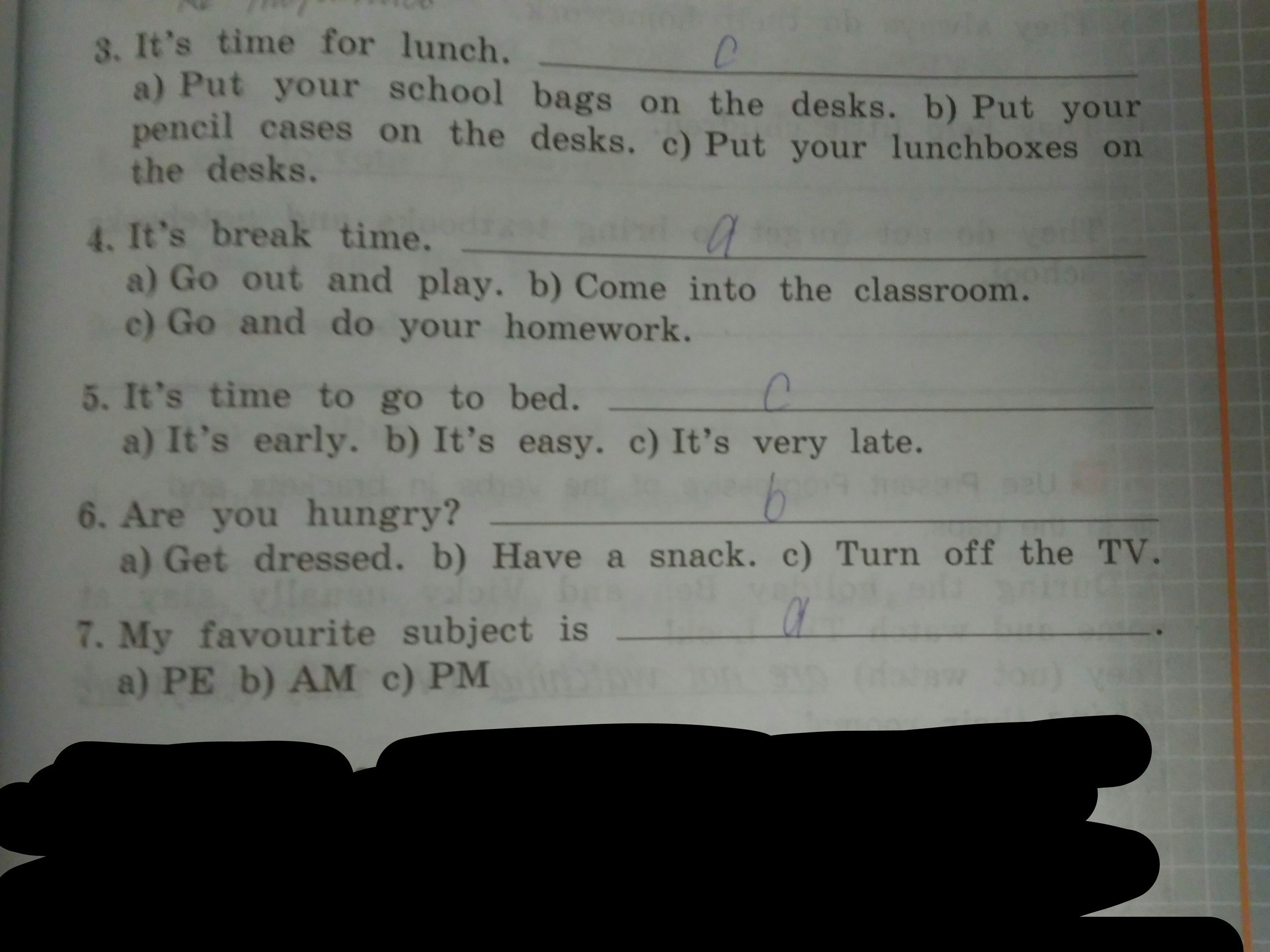 3.Дословно, это время для обеда или же пора обедать, Ответ положи свой "lunchbox" (типа "контейнер" твоего обеда) на парту