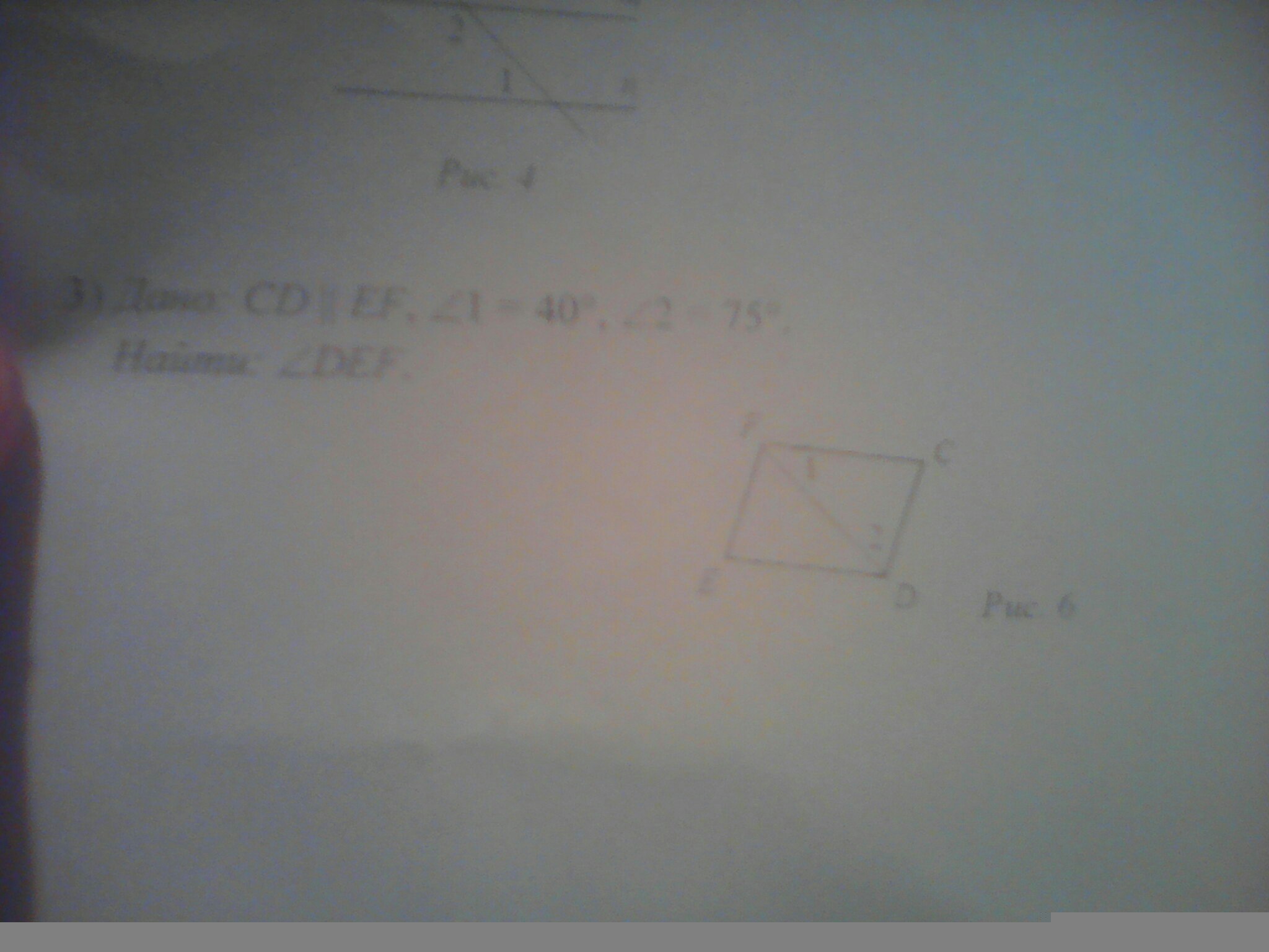 Дано CD||EF угол 1= 45 угол 2=75, найти: угол DEF