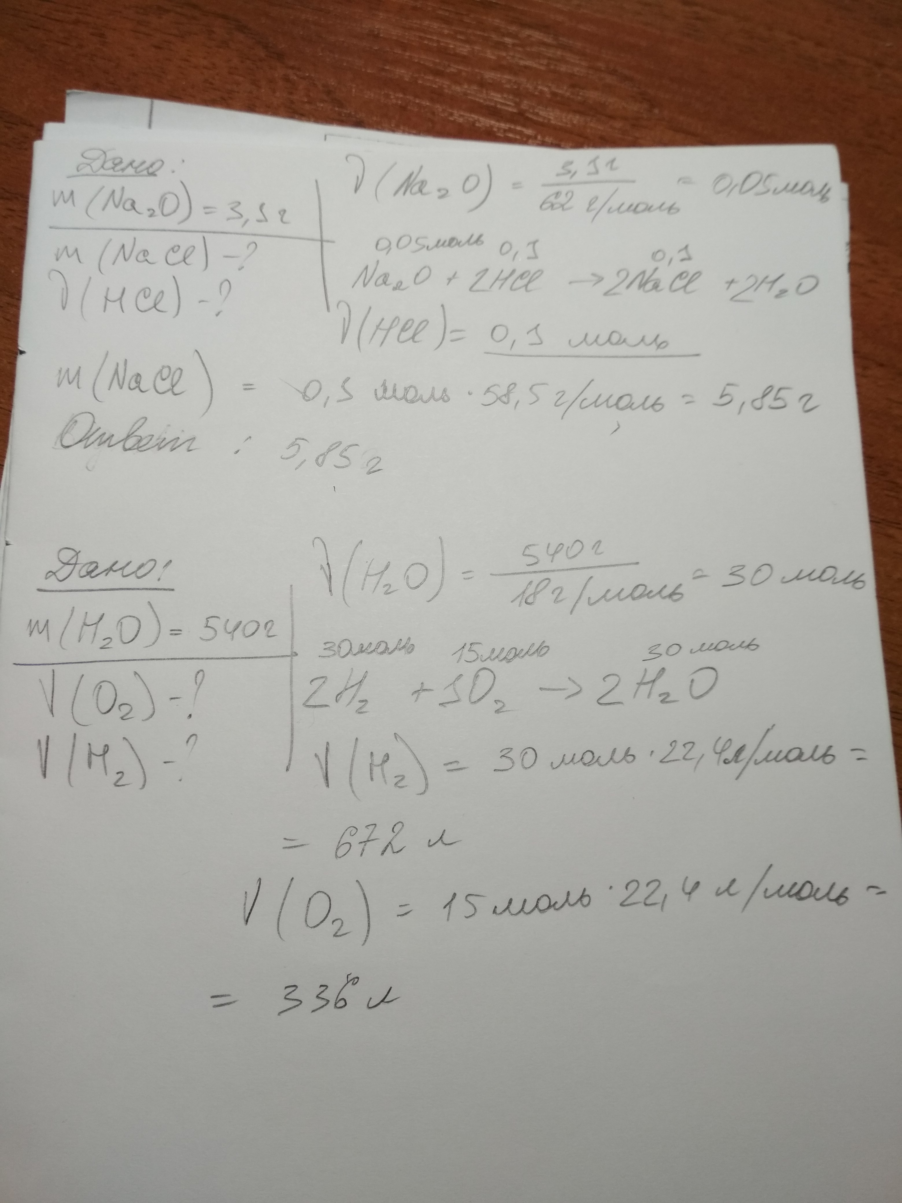 1.Соляная кислота взаимодействует с оксидом натрия с образованием хлорида натрия и воды. Определить массу хлорида натрия, полученного при действии соляной кислоты на 3,1 г оксида натрия. Какое количество соляной кислоты вступило в реакцию?