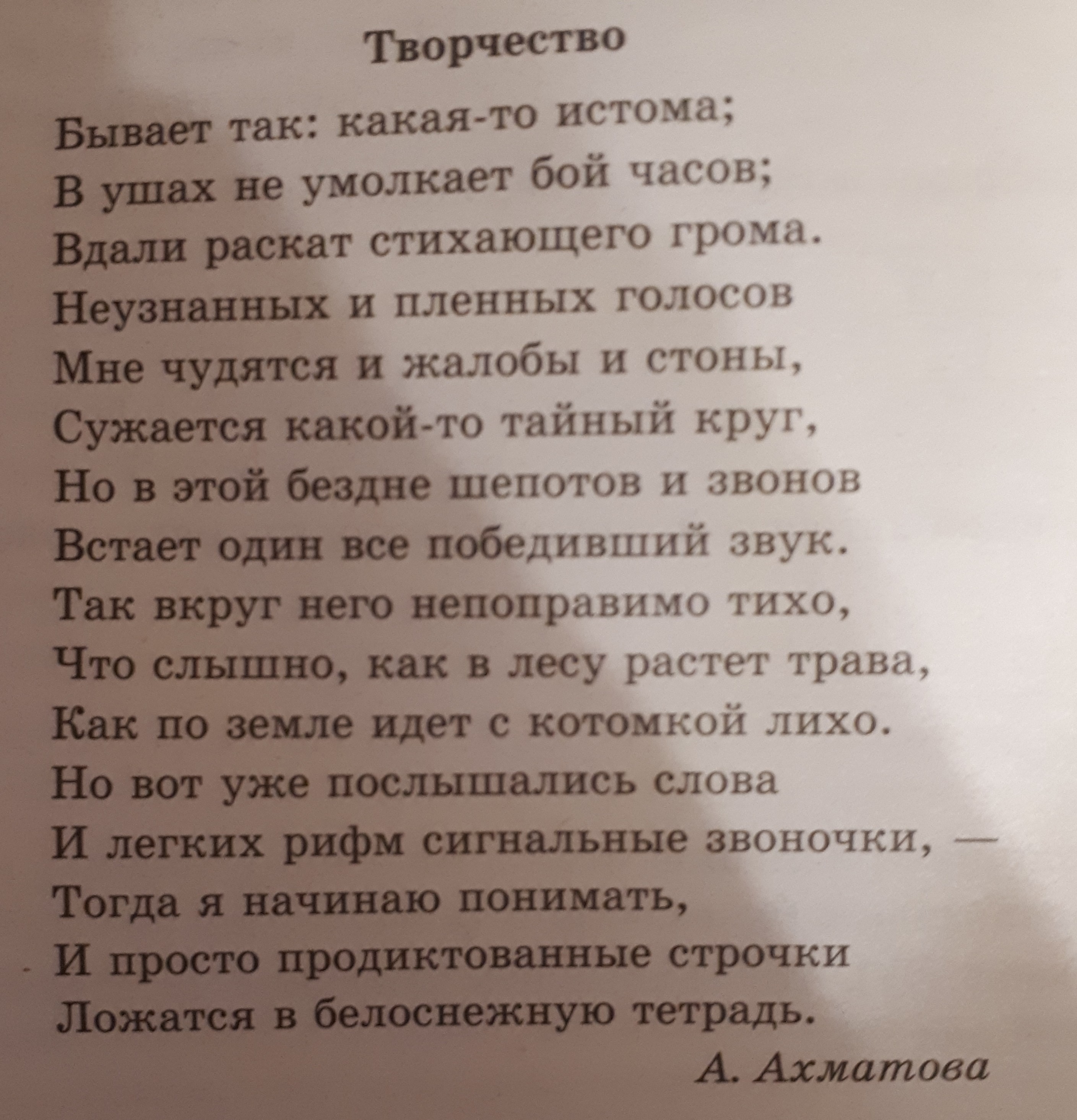 В каких произведениях русских поэтов звучит тема творчества и в чём эти произведения можно сопоставить со стихотворением А. А. Ахматовой? (5-10 предложений) Нужно на завтра!!