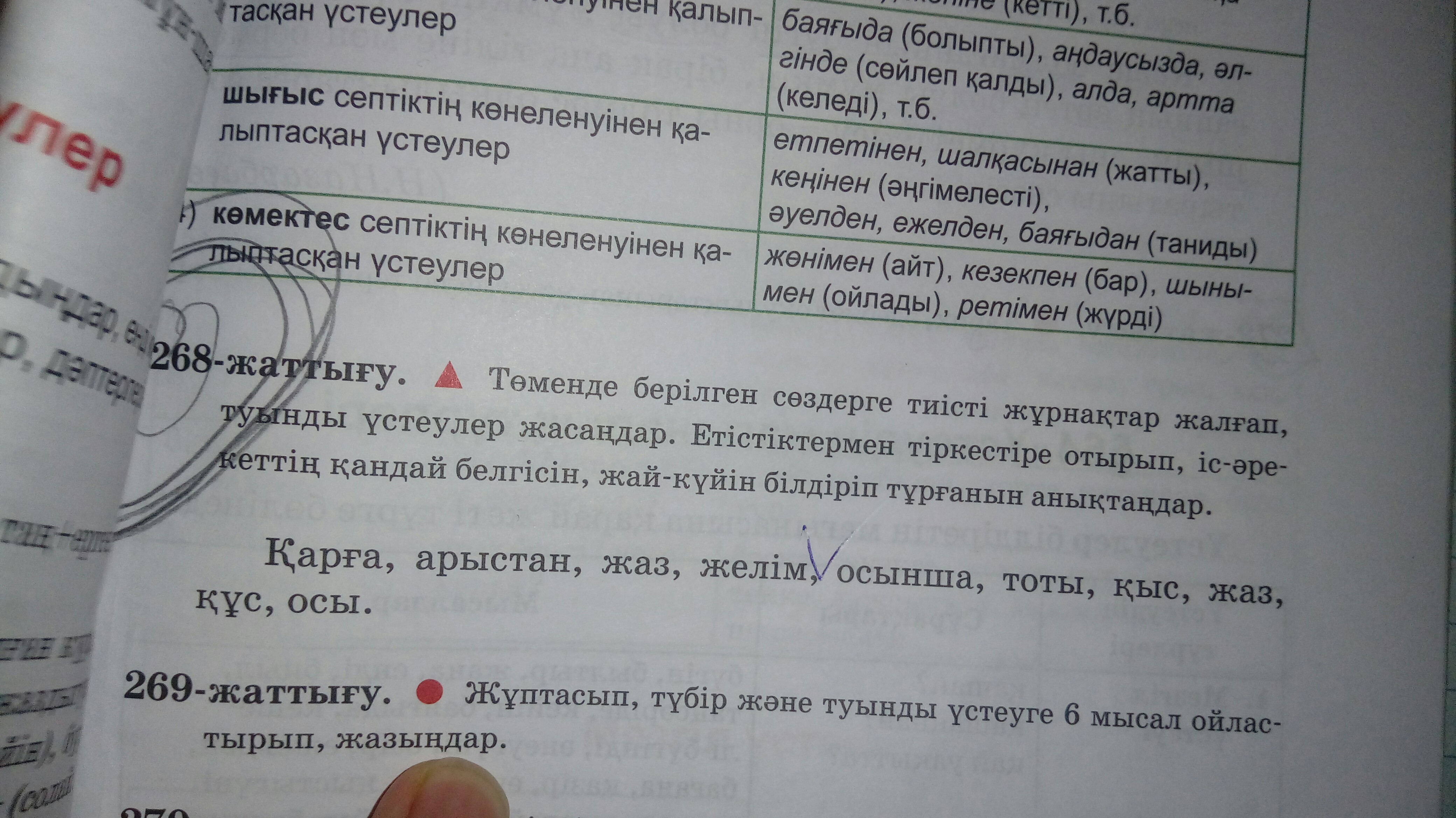 Қарға-дай, арыстан-дай, жаз-дай, желім-дей, осын-шалық, тоты-дай, қыс-тай, жаз-дай, құс-тай, осы-дай.