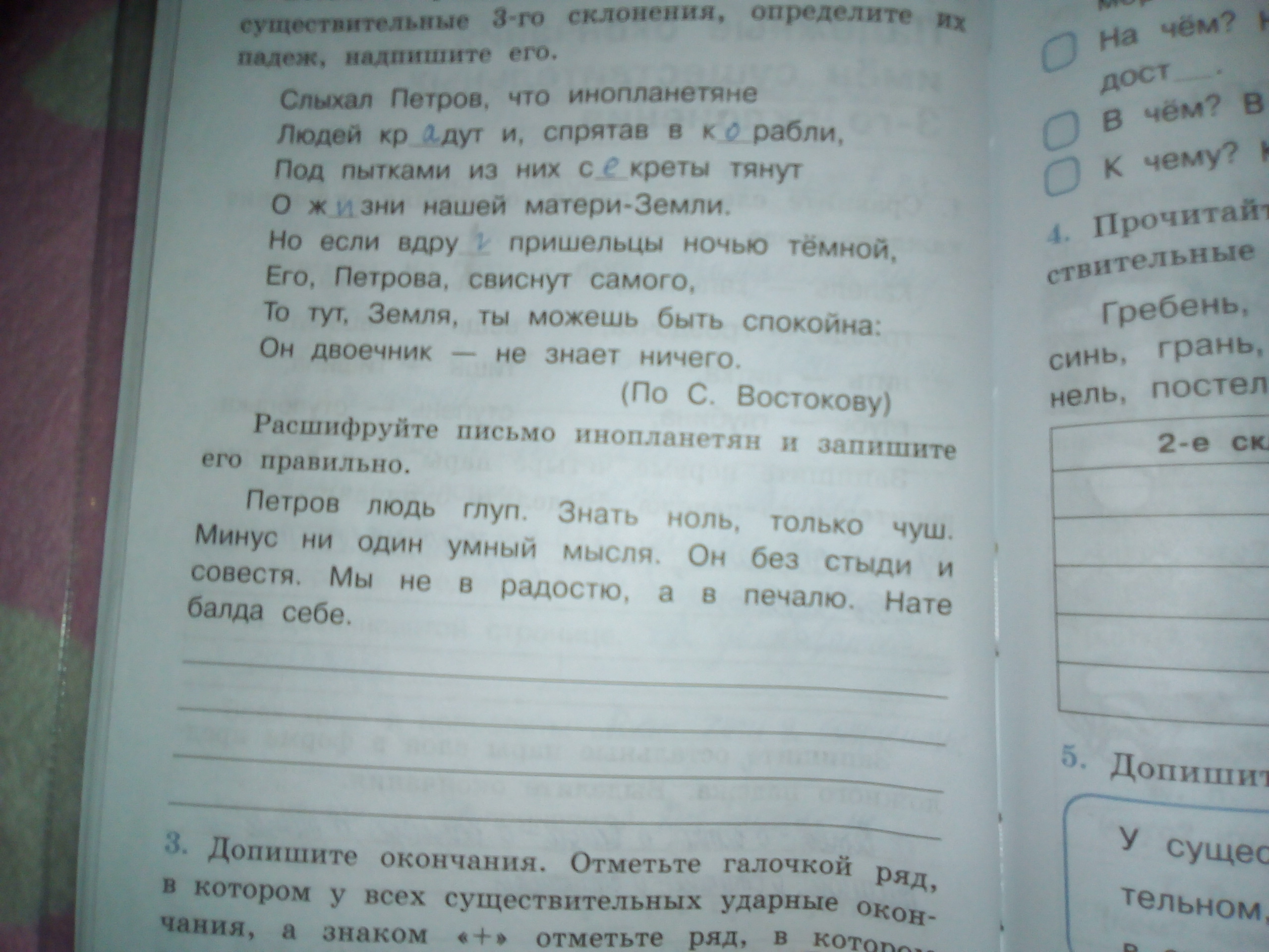 задание Расшифруйте письмо инопланетян и запишите его правильно