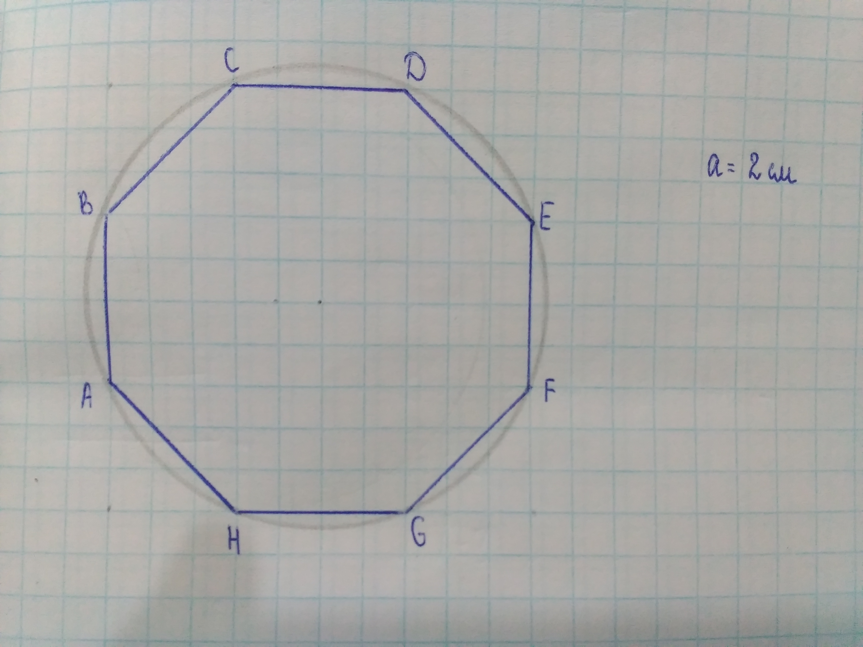 С помощью циркуля и линейки впишите в окружность правильный восьмиугольник со стороной а