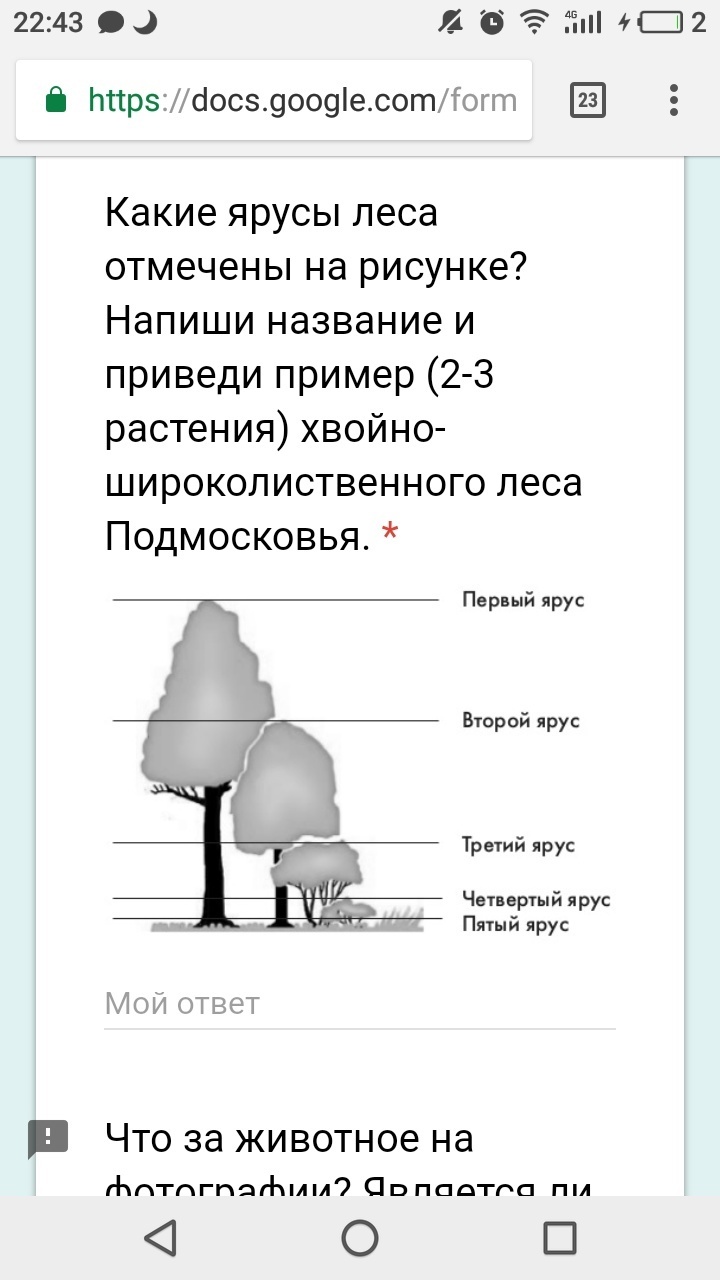 Какие ярусы леса отмечены на рисунке? Напиши название и приведи пример (2-3 растения) хвойно-широколиственного леса Подмосковья. *